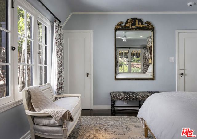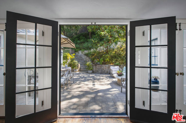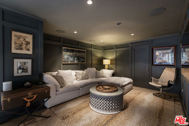 c.1924 JOHN DeLARIO, ARCHITECT. LEGENDARY chief designer of HOLLYWOODLAND and creator of some of Beachwood Canyon's most iconic residences, including the signature stone entry gates, left his visionary mark on this pedigree French Norman storybook home, as well as on landmarks like Castillo Del Lago, (c.1926) among Southern California's most significant Spanish estates. PRIVATE Entertainment home. 4-bed, 3-bath; formal dining room beneath hand-painted coffered ceilings that open to the canyon, an adjoining living room with sculpted coved ceiling, rich hardwood floors, and striking fireplace, all exemplifies DeLario's craftsmanship where Hollywood romance meets architectural precision. Entertainers home: French doors along the main level flow to the courtyard and terraced lawn, evoking the grace of a petite European villa. A stone patio invites slow afternoons, whether savoring a meal or a book whose pages turn slowly. The classic kitchen pairs connoisseurs' appliances with pretty custom shaker cabinetry. Three boutique-inspired bedrooms occupy private corners of the home, while a fourth suite with a private musical-entry nod and a memorable media room forms a garden-wrapped retreat. Interiors layered by Kathryn Ireland and Brittany Bromley infuse warmth and character throughout, and direct access adds ease. The hand-hewn stone exterior, a signature of DeLario's artistry, endures as a rare and distinguished fragment of Hollywoodland's architectural Beachwood legacy. --Public records show 2550sqft. Vendor measurements are 2760sqft. Buyer to verify.
