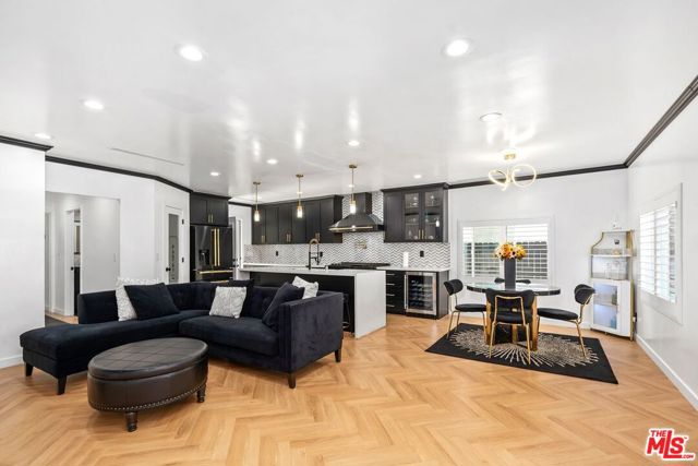 Welcome to this tastefully remodeled three-bedroom, three-bath home perfectly situated in a location near Inglewood's hottest attractions within minutes from SoFi Stadium, the Kia Forum, Intuit Dome, and LAX. Blending modern updates with timeless character, this home offers a bright, open layout ideal for both relaxation and entertaining. The spacious living and dining area connects seamlessly to the chef's kitchen, featuring a generous island with a farmhouse sink, quartz countertops, sleek cabinetry, Z-Line appliances, a walk-in pantry, and beautiful White Oak herringbone flooring. The primary suite provides a private, sunlit escape with a roomy closet and a spa-inspired bathroom showcasing a rainfall shower and stylish chrome accents. Additional highlights include central air and heat, dual-pane windows, solar panels, crown molding, plantation shutters, a newer roof, and a detached finished garage with ADU potential, perfect for an office or studio. Set on a nearly 7,000 sq. ft. lot, the expansive backyard offers lush greenery and ample space for outdoor gatherings. Don't miss this opportunity to purchase a standout home in a premier location.