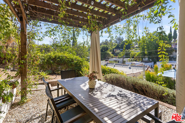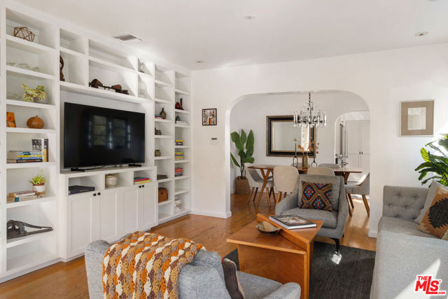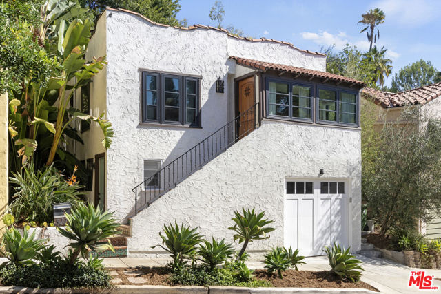 Have it all in Silver Lake with this 1925 Spanish, a private hillside retreat filled with sunlight, character, and thoughtful updates. The light-filled living room is a warm, inviting space with built-ins and an arched passthrough to the charming dining room; wood floors flow throughout. Meal prep is easy in the bright galley kitchen, finished with quartz countertops, stainless appliances, and a walk-in pantry with laundry. Two bedrooms include a serene ensuite primary with a walk-in closet and a remodeled bath, plus a powder room for guests. The lower suite with a separate entrance and bath adds flexibility for visitors or creative work. The lush, secluded yard feels like an idyllic escape with terraced gardens, mature trees, and plenty of space to dine, lounge and gather. Amenities include HVAC, laundry, and a garage with storage. From this tranquil perch, you're moments from Bar Siesta, L&E Oyster Bar, Lamill Coffee, and the Silver Lake Reservoir.