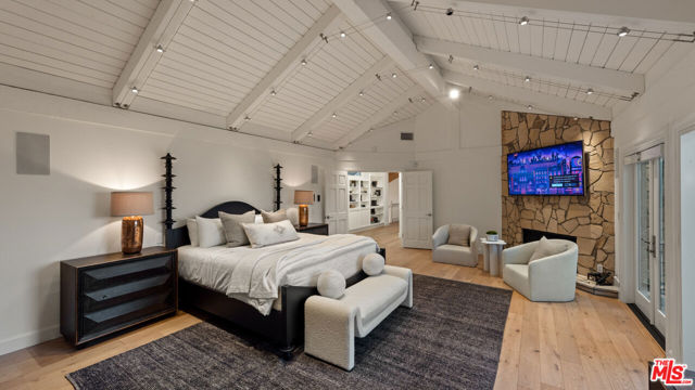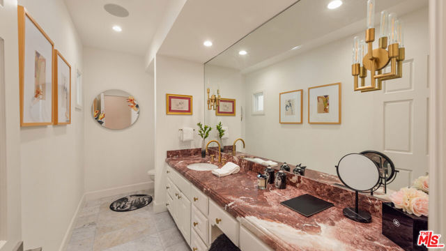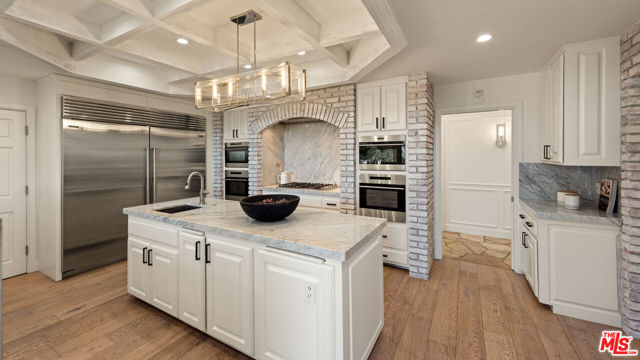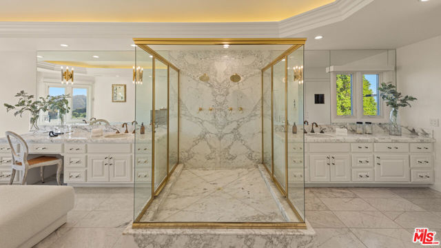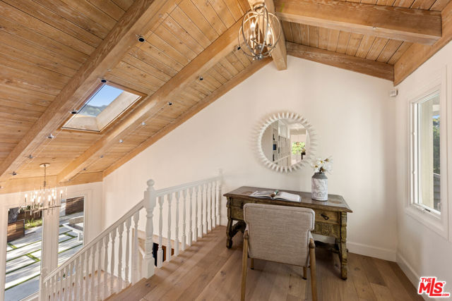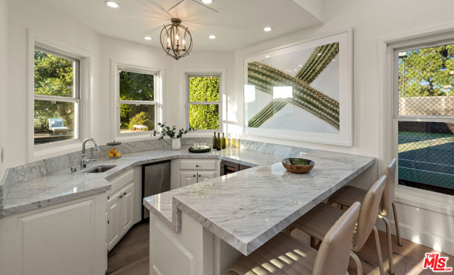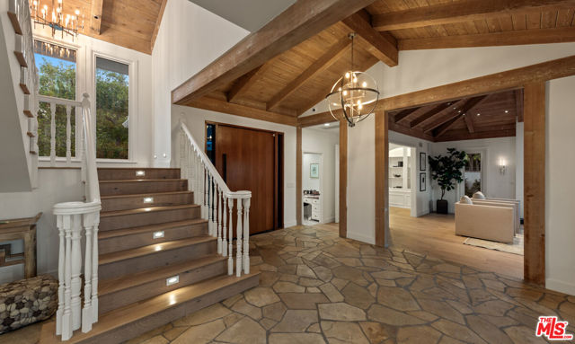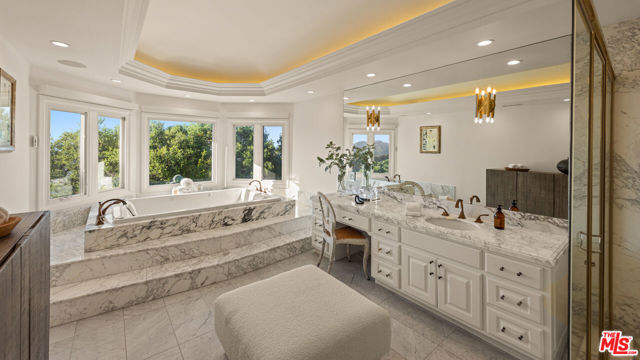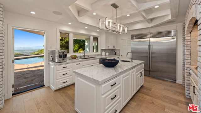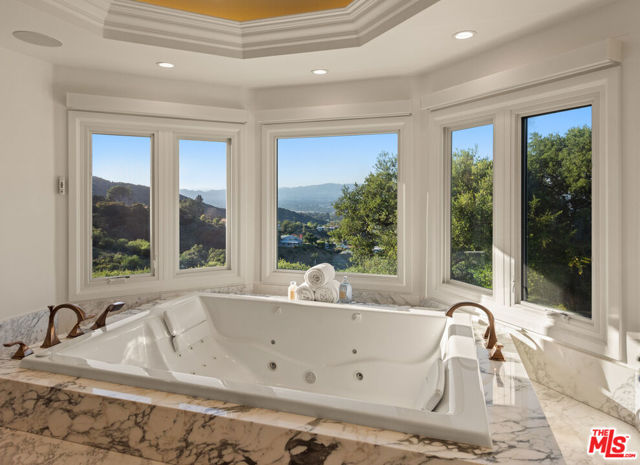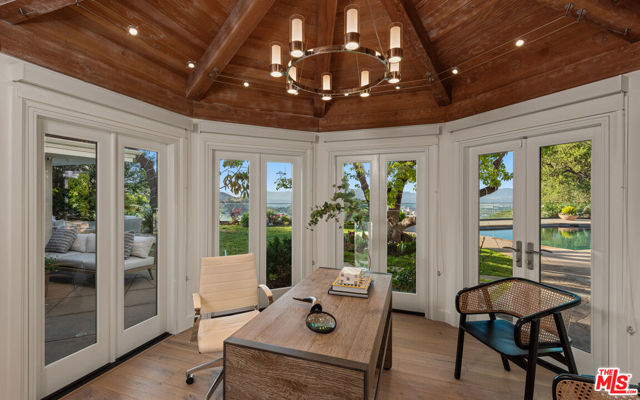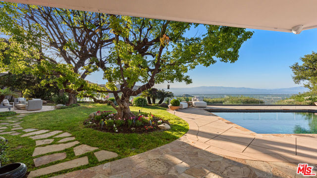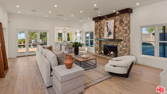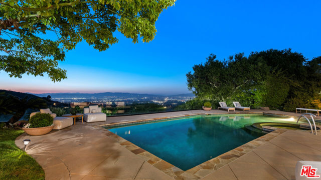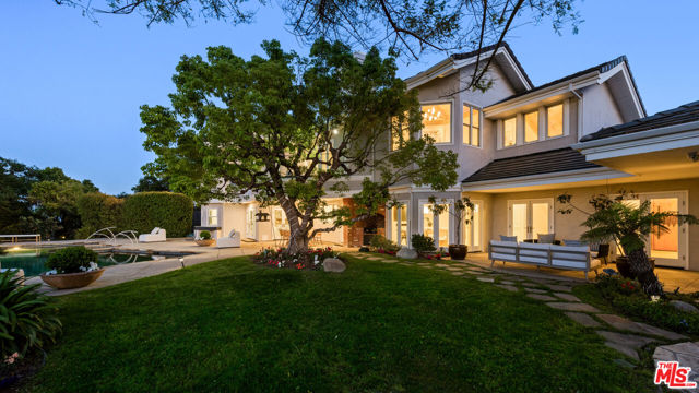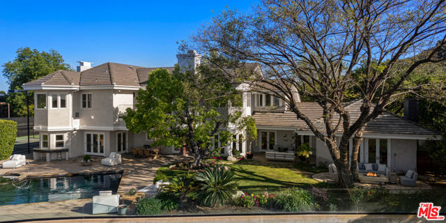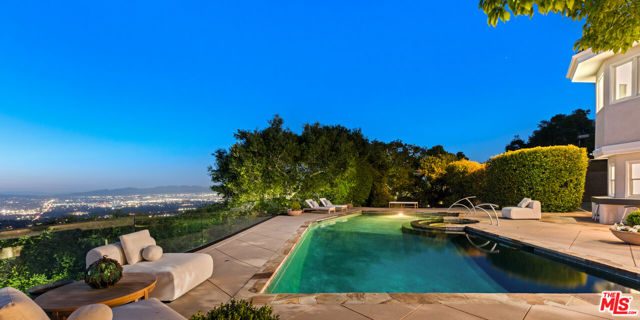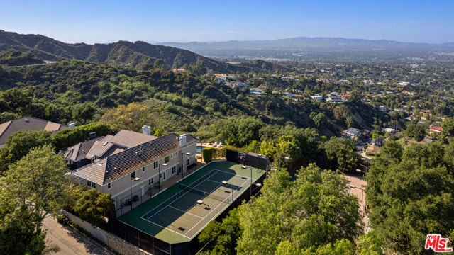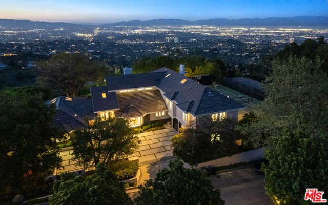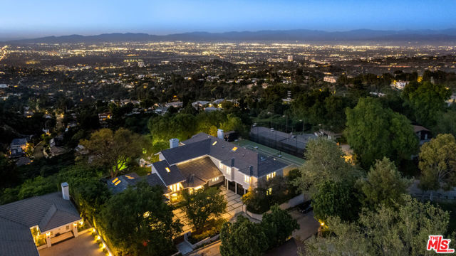 Perched atop a serene, gated street with sweeping views of the canyon and city lights, this exquisite tennis estate is a rare offering for the buyer seeking privacy, sophistication, and exceptional craftsmanship. Behind gates, and nestled within lush park-like grounds, the property offers a full-size, lighted tennis court, a resort-style pool and spa, and a truly seamless blend of indoor-outdoor living. Colorful gardens, vibrant sunsets, and picturesque sunrises over the canyons create a magical atmosphere, while state-of-the-art security and updated systems ensure peace of mind and effortless modern living. The interiors are equally impressive, with soaring wood-beamed ceilings, rich wood and stone floors, and a warm, inviting floor plan. The updated kitchen and bathrooms showcase tasteful design and premium finishes, while expansive windows and skylights flood the home with natural light. The formal dining room features marvelous high ceilings, and an adjoining butler's pantry offers elegance and ease for entertaining. A lovely den/library provides a cozy retreat, and a sophisticated family room includes a full bar and temperature-controlled wine storage. Upstairs, four spacious bedrooms offer comfort and privacy, including a massive primary suite that is a true sanctuary. It features a beautiful adjoining reading room, panoramic views, and a stunning oversized bathroom with a standalone soaking tub overlooking the canyon, a sauna, and dual walk-in closets. A private maid's quarters on the lower level adds versatility and convenience. Outdoors, the detached cabana, mature fruit trees, and multiple entertaining areas offer endless possibilities. An outdoor bathroom sits adjacent to an ideal location for an ADU conversion, perfect for guest accommodations or a studio. A three-car garage and generous motor court provide ample parking for residents and guests alike. This is a signature property where timeless design meets modern luxury, just moments from both Westside and Valley studios, entertainment, private schools, and business centers. Welcome to 3123 Stone Oak Drive, an extraordinary estate to be cherished for generations.