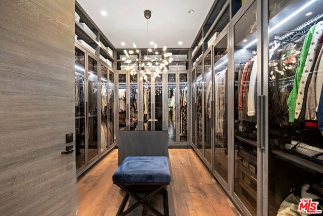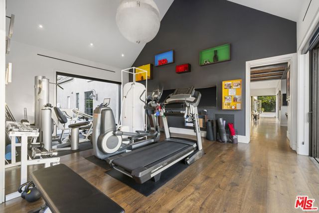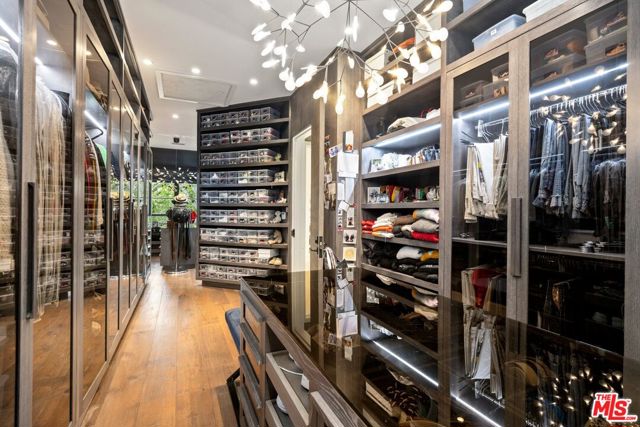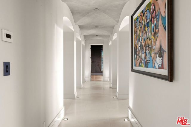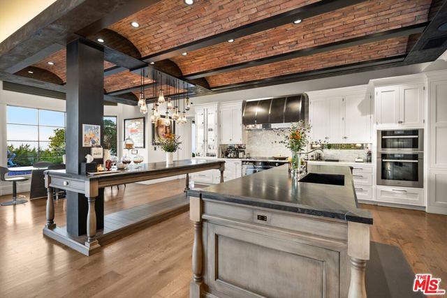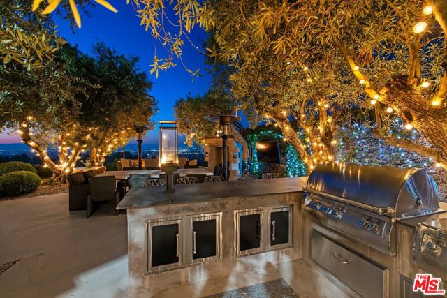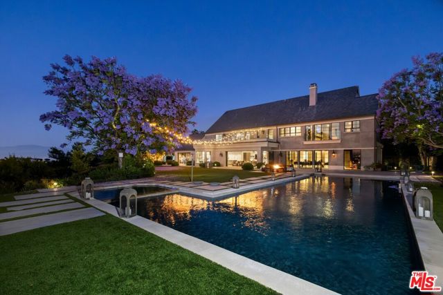 Experience ultimate exclusivity and unparalleled luxury in this French modern transitional. Located in Bel-Air's Stone Ridge Estates situated in a guard-gated community of only 11 homes, the residence is positioned at the back of the private cul de sac optimizing breathtaking city views and privacy. A very rare combination of privacy, 24 hour gated security, a modern home with 180 degree city and mountain views in an estate setting with large grounds. Step inside and discover expansive open living spaces, tasteful finishes and a seamless blend of classic and modern design with wide plank wood floors throughout There is a causal sophistication which gives you the optionality to live relaxed on a daily basis and entertain a large group in a magical setting. The heart of this home is its open-concept family room flowing into a gourmet kitchen equipped with a double island, 60 inch La Cornue dual oven range with 9 burners and top-tier appliances. There is a quaint breakfast area overlooking the garden and a formal dining and living room, where large windows fill the home with natural light. There is an elegant office overlooking the views, a top of the line fitness center, a poker-game room or optional maids room. Move upstairs to the private spaces which are tranquil and quiet and an inviting corridor takes you into the grand primary suite which has a luxurious bathroom, a generously sized walk-in closet and a terrace overlooking the skyline. There are four more well-proportioned bedrooms upstairs including a junior primary suite and a cozy den on the landing. There is a secondary back staircase for convenience and a basement level with polished concrete floors which holds multiple wine refrigerators and has wall to wall built-in cabinetry to maximize storage. The enchanting grounds has sprawling lawns, beautiful gardens and citrus, pomegranate, Jacarandas, Sycamores and Oak trees. The magnificent pool and jacuzzi anchors the yard and soaks up the sunshine throughout the afternoon. There is an outdoor barbecue-kitchen area as well as numerous moments to chill around three fire pits and take in the views. When you are in the mood for movement and fitness there is a sports court, outdoor wellness area with an infrared sauna and cold plunge. Available to Lease fully furnished. Located near several private schools.