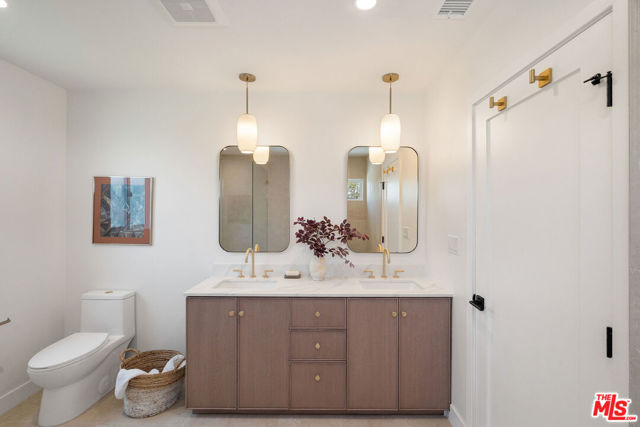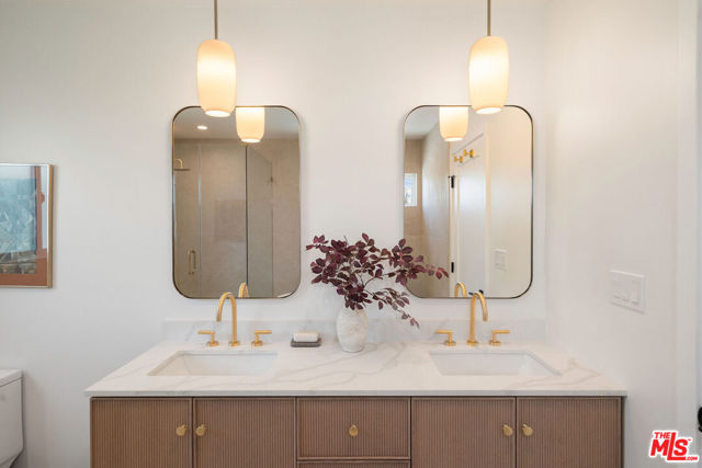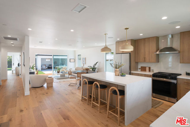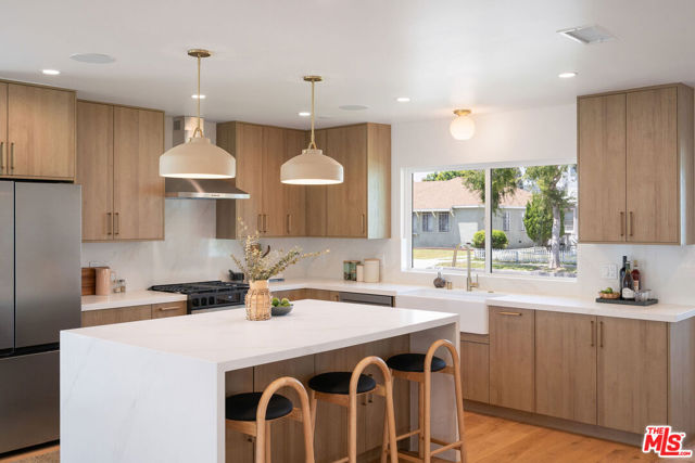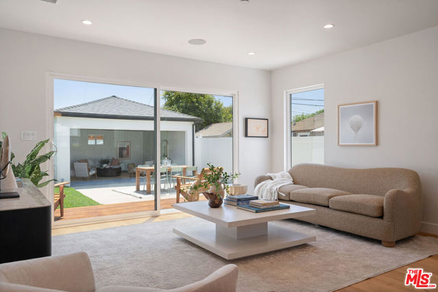 Chic and fully renovated 3 bed 2 bath home in Mid City. Located on a quiet street in one of LA's hottest neighborhoods, this 1,680 square foot home blends modern design with comfort and style. Step through the new redwood front deck and past the new stucco front wall, a perfect spot for sunny morning coffee or laid-back afternoons. Inside, the open floor plan connects the spacious dining and living rooms to the all-new kitchen.The kitchen is a standout, featuring a large island with waterfall quartz countertops, stool seating, a Sharp drawer microwave, ample cabinet storage, and new Samsung stainless steel appliances including a range, refrigerator, and dishwasher. The adjacent dining area creates a comfortable zone for entertaining or daily meals. Sliding doors open to a private, fully fenced backyard with multiple outdoor dining and lounge areas.Every bedroom is generously sized and includes a walk-in closet, offering both comfort and function. The expanded primary suite is a true retreat with a spacious en suite bathroom featuring custom dual vanities, a walk-in shower, and a freestanding tub surrounded by spa style tile. A generous walk-in closet adds both function and luxury. A glass door leads from the suite to the backyard, stepping onto a redwood landing that opens to a beautifully landscaped outdoor space with a mature persimmon tree.The guest bathroom features stylish tile work and includes a tub with shower, blending beauty with practicality.The laundry room offers cabinets above and enough space for a side-by-side washer and dryer. In the hallway, custom linen cabinets provide additional storage.This home was thoughtfully updated with quality and comfort in mind. Features include a new roof, HVAC system, plumbing, electrical, tank less water heater, hardwood floors throughout, recessed lighting, new stucco, fresh paint, and professional landscaping. The finished 400 square foot garage with sliding doors provides flexible space that can be used as an office, gym, or bonus room.The 6,000 square foot lot offers excellent indoor-outdoor flow and plenty of space for relaxing or entertaining. Built-in speakers in the primary suite, kitchen, living room, and backyard enhance the home's entertainment capabilities, perfect for hosting gatherings or enjoying music throughout the house. This home is ideally situated just minutes from Whole Foods, Target, and the thriving West Adams food and coffee scene, with popular spots like Highly Likely, Damn, I Miss Paris, and more close by. Outdoor lovers will appreciate quick access to Kenneth Hahn State Recreation Area, nearby hiking trails, and Culver City's Platform. The Metro Expo Line makes getting to Downtown LA, Santa Monica, and other parts of the city a breeze. You'll also find local favorites like Johnny's Pastrami, Vicky's All Day, Cento, Alta, Fleur et Sel, and Chulita just a short drive away. This is a rare opportunity to own a stylish, move-in ready home in one of Los Angeles's fastest growing and most desirable neighborhoods. The home has passed final inspection, and the Certificate of Occupancy is in place. Welcome home.