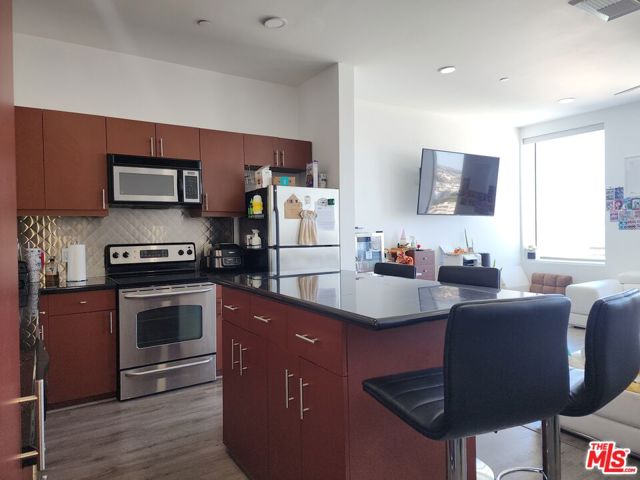 Ready to sell quick! Reduced $30,000! Best location one-bedroom, one-bathroom unit offering the perfect blend of modern design, comfort, and luxury amenities. Situated on a high floor, this bright home features unobstructed views of downtown Los Angeles through expansive windows, creating a serene backdrop for everyday living. Interior Features: Open and airy layout with high ceilings, beautiful waterproof flooring, and with a little tender loving care, this is a gem you cannot find elsewhere. Modern kitchen with a large island, stainless steel appliances, glass tile backsplash, and ample cabinetry. Brand new washer, dryer combo included in the sale. Custom built-in cabinetry and abundant storage throughout the unit. Private balcony perfect for enjoying panoramic views of Los Angeles. Secure fob-controlled elevator access and 24/7 front desk service for packages and guests. Sky Deck Amenities: The Mercury offers resort-style living on its rooftop Sky Deck, with; Heated infinity-edge pool and Jacuzzi spa. Fully equipped fitness center with panoramic views of the Hollywood Sign and Los Feliz. Shaded BBQ and lounge areas with multiple seating spaces. A tranquil grass garden and pet-free lawn for relaxation. Location: Perfectly located in the heart of Koreatown, residents enjoy walking access to trendy restaurants, cafes, shopping, and essential services. The building also offers ample guest parking, a rare convenience in the city.