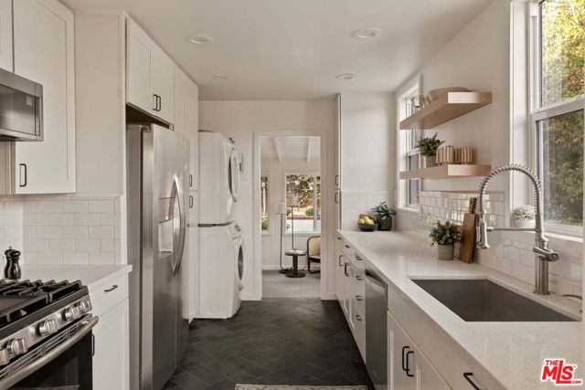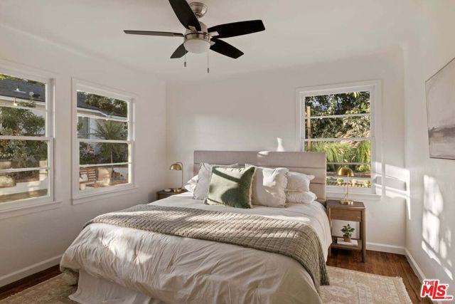 Restored 1938 charmer in Glassell Park, perched quietly above Verdugo Village and bordering neighboring Adams Hill. Find your Northeast LA haven in this hillside classic with striking curb appeal. Packed with period details: original 1938 Art Deco glass door knobs and brass escutcheons, coved living room ceiling with stained-glass windows, and a wood-paneled wainscoted dining room. The house boasts refinished original hardwood floors that create a warm atmosphere while the newly restored original wood windows open and close like a breeze. An abundance of natural light flows through the home, filtering through the front and rear facing bedrooms where at certain hours of the day, one may say zen dwells here. The back bedroom features a new ensuite bath, and private entrance offering flexible usage - home office, dedicated creative studio, or Airbnb income generator! Morning light and eastern vistas are best experienced in the cozy time capsule of a dining room with it's period wallpaper and handsome corner-view windows. Modernity returns with an updated chef's kitchen featuring energy-efficient appliances, floating shelves, quartz countertops, and a stacked washer/dryer. Amble out back where a lush backyard offers pure serenity, enjoy al fresco dining under the pergola with twilight breezes, lounge areas and flat space for quiet meditation, or dinner parties and endless play. Lemon and lime trees, rosemary, succulents, and fountain grass adorn the generous 5,778 sq ft lot, giving you plenty of room for an urban garden or outdoor living. After a sun-filled day of pruning and planting, restore yourself on the shaded front porch and admire your view looking east at the rolling hillside and city lights. The garage offers ample storage space, potential for conversion, and includes a newly installed 240v outlet for an EV charger and new utility sink. Major recent updates provide peace of mind: New HVAC System, New Back Bathroom, Window Restoration, New Exterior/Interior Paint, New Front Porch Bannister (2025). Refinished Hardwood Floors, 240v Outlet installed in Garage (2024). New Roof (2022). Recessed Lighting (2019). Renovated Kitchen & Bath, New Electrical (2018). Located in the sought-after Delevan Drive Elementary School area. This is a great East Side location with proximity to Adam's Square (Kafn Coffee), and all the great shops and eateries in between - Bub & Grandma's, Little Ripper, Lemon Poppy, Wife and the Somm, Habitat, Capri Club and Dunsmoor. After a bite quickly escape up or down the 2 freeway to DTLA or Pasadena or meander closer to Eagle Rock and the popular Highland Park haunts off York. Don't miss your opportunity for a home that captures the heart of old Los Angeles, carefully restored for your modern life.