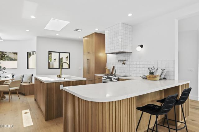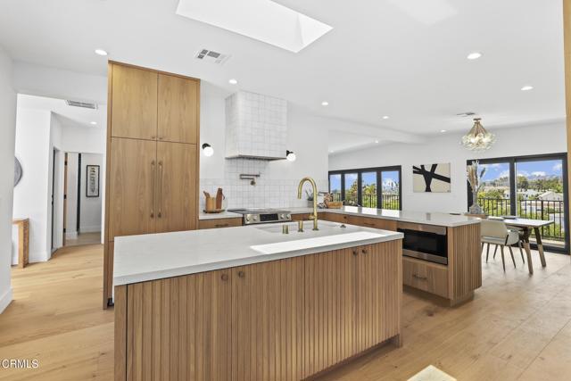 Tucked into one of Los Feliz's most sought-after pockets, this beautifully renovated home where blending modern comfort finds timeless style. Upon entry, the open-concept living space invites you in with a stunning kitchen featuring all new appliances, sleek finishes, and a spacious breakfast nook, perfect for everyday living or casual entertaining. The dining area flows seamlessly into the living room with ample natural light, where pocket doors open onto a generous balcony deck showcasing sweeping views of the mountains, sparkling city lights, and the iconic Griffith Observatory. Also on this level, you'll find a guest bedroom and a fully remodeled bathroom and direct access to the garage. Downstairs, the lower level offers a separate laundry room for convenience, another hallway bathroom, three additional bedrooms, including a tranquil primary suite with ample closet space and direct access to a cozy sitting area and expansive backyard, ready for entertaining, gardening, or creating your own outdoor retreat. Located in the heart of one of LA's most cherished neighborhoods, this home offers easy access to beloved local shops, dining, sought after school districts and the creative energy that defines Los Feliz. 4171 Holly Knoll is more than just a home, it's home sweet home.
