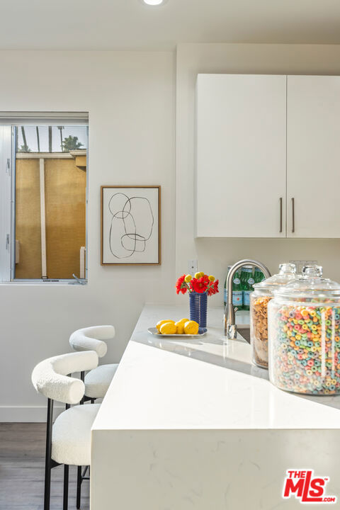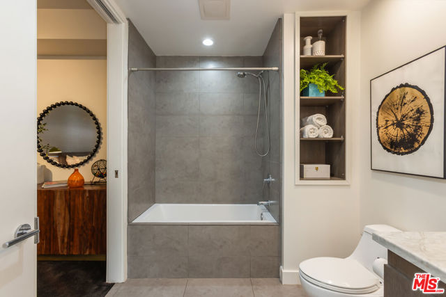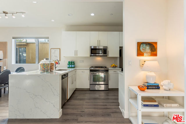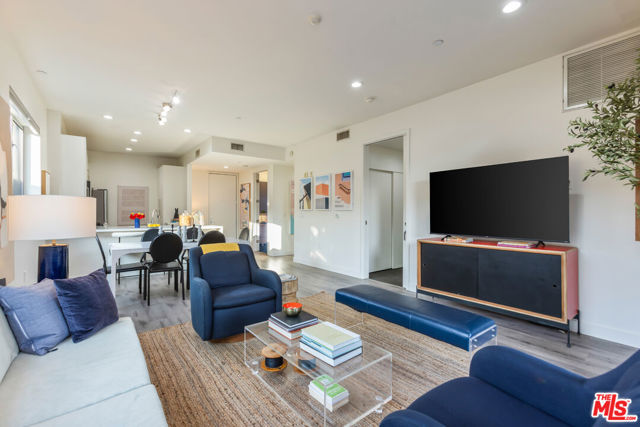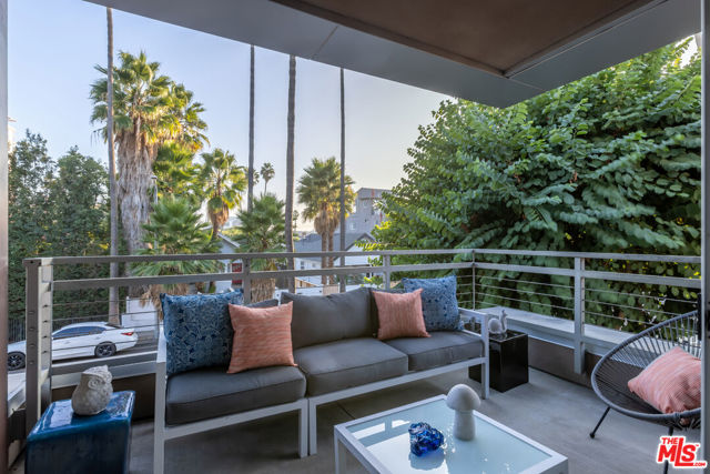 Experience modern sophistication in this sunlit, front-facing corner condo perched in the heart of Hollywood. Boasting high ceilings and windows on three sides, this turnkey unit features a thoughtful open-concept design including two inviting ensuite bedrooms with only one adjoining wall. The airy living area and kitchen highlight gleaming quartz countertops with a breakfast bar, stainless steel farm sink and appliances complemented by ample storage cabinetry. Flowing seamlessly to an expansive outdoor terrace perfect for entertaining, enjoy morning coffee and relax over sunset cocktails with sweeping views of the city. Step into the serene primary suite, arranged for a work-from-home lifestyle, providing privacy for dressing plus a spa-worthy bath graced with dual vanity, rainfall shower and luxurious soaking tub. A Nest thermostat and full-sized laundry ensure comfort and convenience. This well-appointed complex offers upscale amenities: open-air interior walkways, common gathering spaces, state-of-the-art fitness center, controlled remote access with Butterfly entry system, tandem parking equipped with a dedicated EV charger and numerous guest spaces in the secure garage. Tucked on a quiet residential street in close proximity to vibrant Hollywood Blvd, Netflix, Paramount and Sunset-Gower studios, Pantages and Fonda theatres, the Hollywood Palladium, Emerson LA as well as shopping conveniences, swanky nightclubs, trendy cafes, boutique hotels and freeway access. Your Hollywood lifestyle awaits!