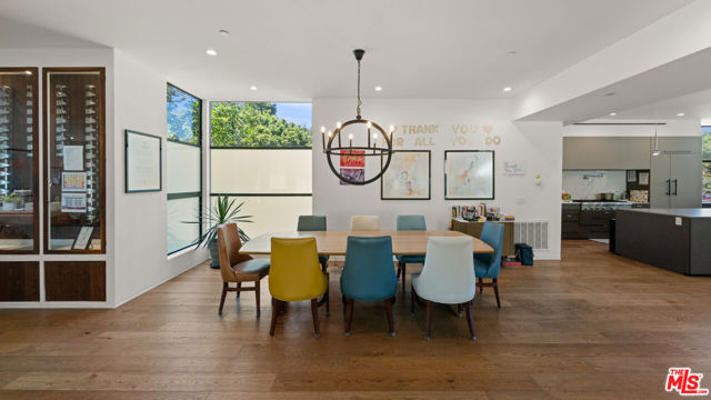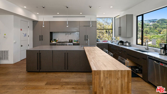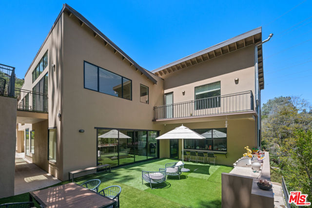 Ideal for a 1031 exchange, with a healthy lease in place through October 3, 2026, this striking Brentwood residence offers an exceptional investment opportunity. Privately nestled in a sought-after neighborhood, the home showcases inspired architectural design across three expansive levels, each with open living areas, inviting fireplaces, and effortless access to the outdoors. The main floor opens to an impressive great room that blends a designer chef's kitchen, a stylish dining space with a dramatic wine wall, and a warm living area centered around a fireplace. Large glass doors extend the living space to a refined outdoor dining and entertaining patio. The upper level hosts the serene primary suite with a spa-style bath, along with two additional en suite bedrooms and a comfortable family lounge. The lower level is tailored for leisure and entertainment, featuring a sleek bar, a media-ready family room with fireplace, a private screening room, and two more bedroom suites-one perfectly suited for a home office. With its seamless indoor-outdoor connection, exceptional privacy, and sophisticated design, this home offers both an elevated lifestyle and enduring appeal.