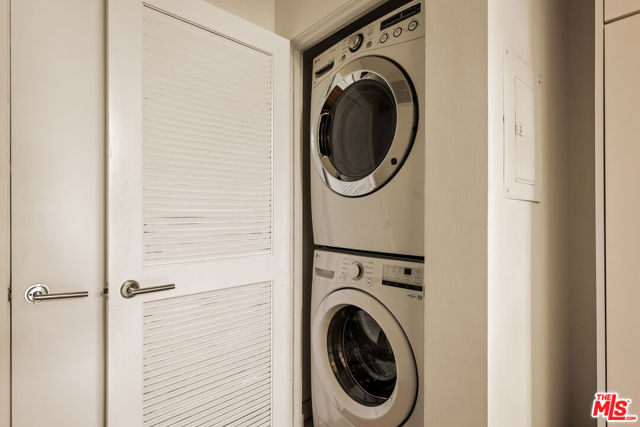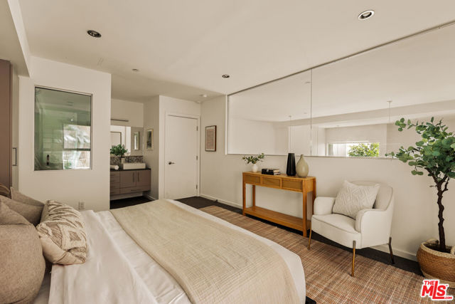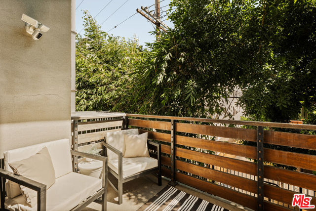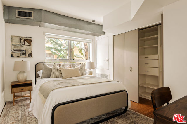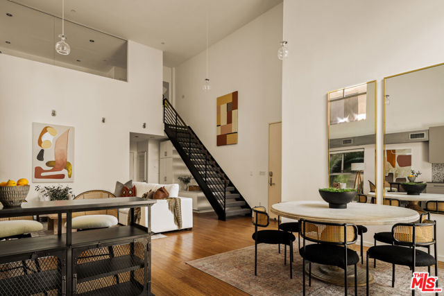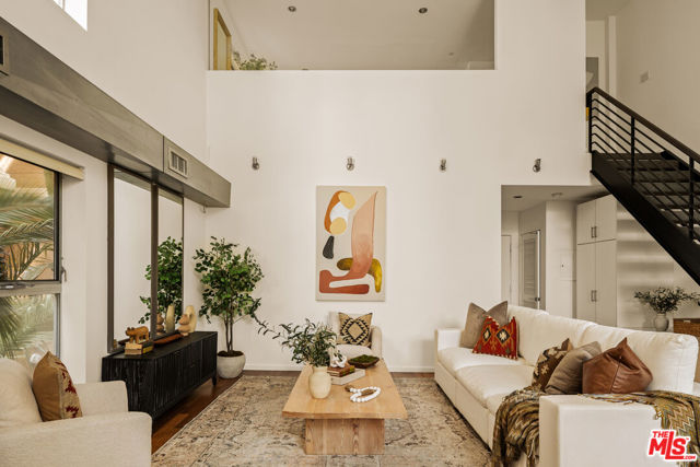 Residing in one of Los Angeles' most centrally located neighborhoods, this creative architectural loft is accentuated by an open-concept, contemporary design. Nestled in a prime back corner spot in the building - away from the street and high above ground level - this residence delivers as a serene, private, and secure retreat. Bamboo hardwood floors, soaring ceilings, and oversized windows create a juxtaposition of warmth against exposed industrial ducting. Anchoring the living area, the well-appointed kitchen and dining space flow seamlessly out to an oversized balcony, perfect for entertaining. Upstairs, a large mezzanine-style bedroom features windows overlooking the main level, offering a sense of openness while maintaining separation. On the main level, a second bedroom provides the ideal space for a home office, creative studio, or additional sleeping quarters. With two modern bathrooms, ample storage, and an in-unit washer and dryer, this space offers both form and function. Beyond the unit, enjoy sweeping views from the shared rooftop terrace - a hidden gem ideal for lounging, entertaining, or watching the city come to life. Parking is never an issue with two assigned garage spots in addition to multiple guest spaces. All of this, just moments from some of the most iconic restaurants, theaters, nightlife, and studios.