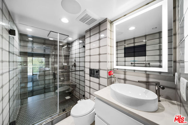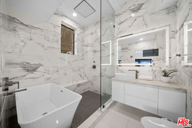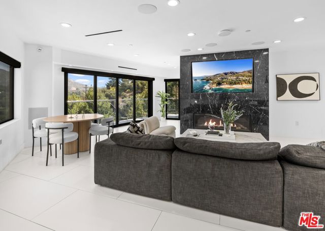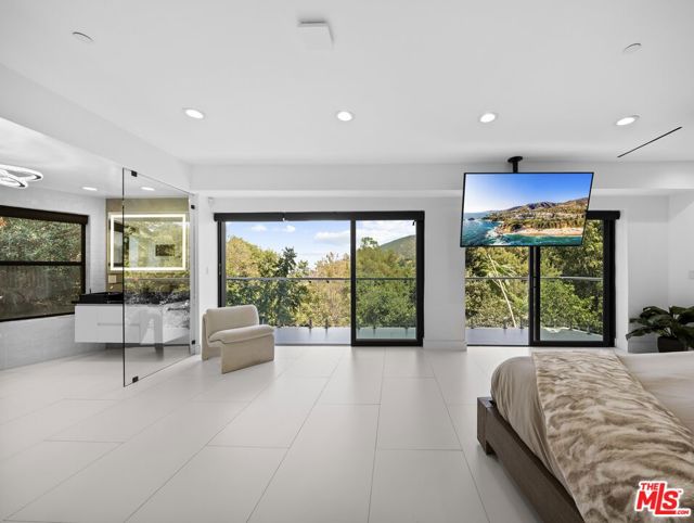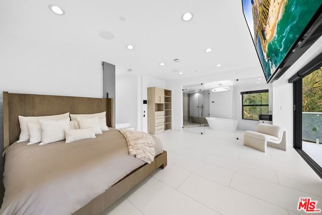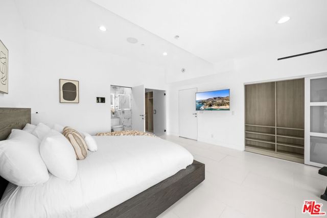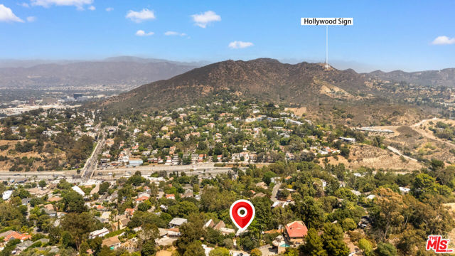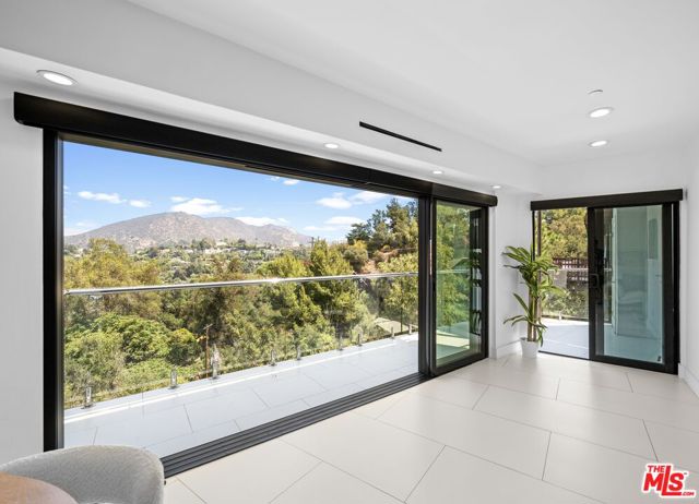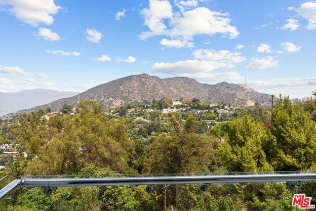 Elevated above Mulholland Drive in the Hollywood Hills, this architectural home showcases unobstructed views of the city lights, surrounding mountains, and the iconic Hollywood Sign. Designed for both relaxation and entertaining, the home features a seamless open floor plan with expansive sliding glass doors that invite natural light and breathtaking sunsets. The open-concept interiors feature a chef's kitchen with professional-grade appliances, an expansive island, and effortless flow into the living and dining spaces. The primary suite is a private sanctuary with a balcony, sitting area, custom walk-in closet, and a spa-level bath with soaking tub, glass-enclosed shower, heated floors and European finishes. Equipped with state-of-the-art Crestron smart home automation, the residence offers effortless control of automatic shades, multi-room speakers, dimmable lighting, climate, and security all from your device. For music enthusiasts, a professional-grade recording studio with full soundproofing provides the perfect environment to create and produce with ease. Additional features include fruit trees, and a reverse osmosis water system delivering purified alkaline water straight from the tap. With striking curb appeal, a beautifully landscaped front yard, a two-car garage, EV charging, and a desirable location just moments from Runyon Canyon, the Hollywood Bowl, and the Sunset Strip, this residence embodies modern luxury in one of Los Angeles' most iconic settings. Must see in person. Views and space far better than photos. Call for your tour today .