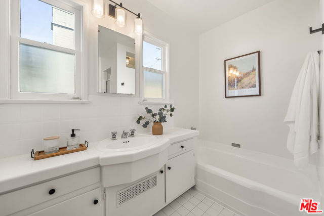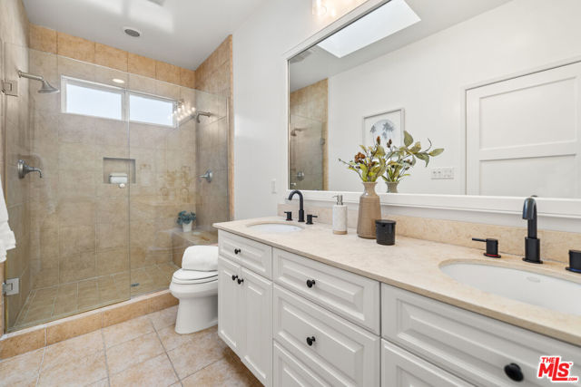 Located on one of North Kentwood's premier streets, this light-filled single-level home with three bedrooms and two bathrooms blends timeless charm with modern updates. A formal living room with a classic brick fireplace flows into an adjacent dining room, while the chef's kitchen with breakfast nook and stainless steel appliances opens to a spacious family room with French doors leading to a private backyard that backs to Loyola Marymount University and is lined with tall trees for added privacy. The serene primary suite sits at the rear of the home and features French doors with direct access to the backyard, a walk-in closet, and a spa-like bath with dual sinks, skylight, and oversized shower. Two secondary bedrooms at the front of the home are served by the original hallway bath. Additional highlights include beautifully refinished original hardwood floors, freshly painted interior and exterior, central heating and A/C, gated driveway, and bright, airy rooms throughout. A detached two-car garage offers a versatile flex space with half bath, ideal for a home office, studio, or gym.
