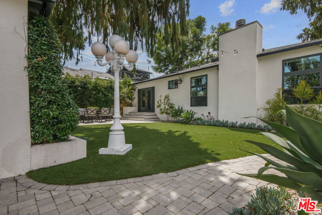 Freshly updated and move-in ready located in the highly sought-after Kentwood area of Westchester, this single-level three Bedroom/Two Bathroom modern traditional sits on a spacious corner lot shaded by two large Cypress trees with room to live, work, and play. Inside, is a formal living room featuring a cozy wood burning/gas fireplace and large picture window. Enjoy the formal dining room that opens up to a private seating courtyard. The updated kitchen with sleek counters, modern stainless-steel appliances, and plenty of storage holds a special treat- a large built-in wood-fired pizza oven perfect for fun nights with family and friends. The spacious primary suite with a raised ceiling offers a walk-in closet, spa-style bathroom with double sinks and tasteful designer finishes. French doors give you direct access to the exterior backyard. Two additional bedrooms flex easily for guests, or home office. The oversized artificial turf yard is perfect for BBQs, games and pets, graciously illuminated with over-head bistro lights. Close to shops, restaurants and local hotspots, this home balances comfort with lifestyle. Whether you're hosting friends, working from home, or kicking back outdoors, this one has the space and style to match your everyday occasion.
