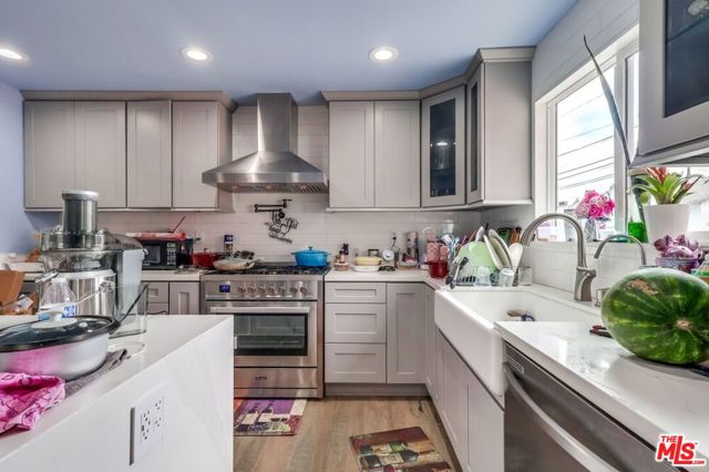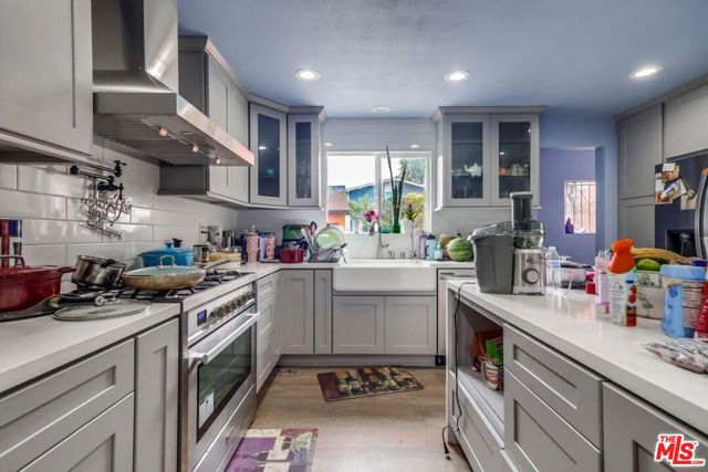 Seller is packed and ready to go so - bring your vision when looking at the photos! This beautifully updated home has been thoughtfully renovated with no expense spared. Recent upgrades include fresh paint, recessed lighting, central air and heat, a tankless water heater, and new hardwood floors throughout. The spacious living room flows seamlessly into an open dining area and a modern kitchen featuring a quartz island, stone counters, sleek cabinetry, a range/oven combo, and a mounted chef's faucet. Downstairs offers three bedrooms, a full bathroom, and a step-down family room with a cozy fireplace that opens to the backyard. Upstairs, the expansive primary suite boasts a walk-in closet and a luxurious bathroom with dual vanities, glass vessel sinks, a separate shower, and designer tile finishes. Both bathrooms have been upgraded with stylish tile flooring and modern fixtures. Perfect for a large family, this move-in ready home also features a generous backyard and a two-car garage with potential for an ADU conversion creating an excellent opportunity for additional income. This is truly a one-of-a-kind property in the area, and it won't last long! Exterior of Home Is Being Painted and Will Be Painted Prior To COE. Motivated Seller. Make an offer and lets open escrow! Only Serious Offers Will Be Considered