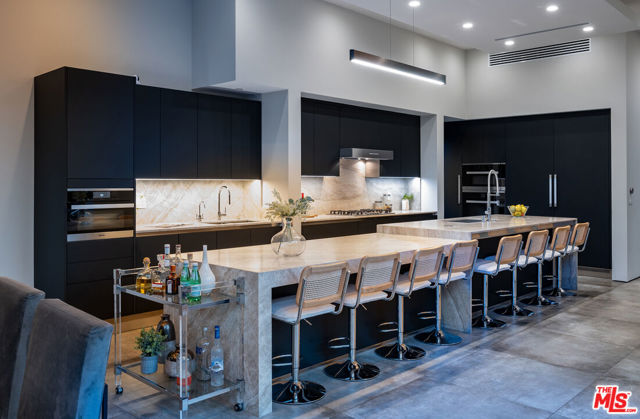 Custom built Modern home featured in Dwell and Haven that raises the bar with quality construction you can see and feel. Excellent fit and finish, unique features and beautiful Architectural details not commonly seen in homes outside of the Hollywood Hills. Refined scale throughout with soaring ceiling heights, timeless high-end luxury finishes and great attention to detail. The main level flows seamlessly to expansive outdoor patios, decks and swimming pool through walls of glass that disappear into the structure; accommodation for large gatherings. Strategically placed vertical and clerestory windows take advantage of year round natural light on the desirable south side of 4th St. Chef's kitchen with all top-of-the-line Miele appliances, gorgeous Quartzite counters and custom Arclinea cabinetry. Large dining area plus seating for eight at the huge kitchen island complete with Wine Cooler, second sink, pop-up outlets and lots of extra storage space. The top floor consists of an open view hallway connecting two large ensuite bedroom retreats with a third ensuite bedroom in-between. The primary features a modern flush mount gas fireplace, luxurious custom closet with center island and a spa style bath that has floor to ceiling windows and tile, free-standing tub, floating wall-to-wall double vanity, shower with room for two and a separate water closet. Extending outside, there's a south facing Juliette balcony with cityscape and backyard pool views plus a north facing treetop and mountain view rooftop deck over the garage with soft surface grass on almost 250sf. The lower level offers valuable flex-space with high ceilings and natural light; fully equipped for entertaining, work, extended family, live-in help..or simply having separation from the main level, featuring a wet bar, dining area, several bedroom and bath options, room for a home theater / private screening room / recording studio, home business / offices, kids nirvana play space, etc. The outdoor setting offers privacy and security with walls, gates and tall trees overlooking the sun-drenched heated pool, party-size hot tub with waterfall, all surrounded by lush mature landscaping which create an inviting atmosphere. Understated curb appeal with parking for two in the driveway and two in the direct-access garage that features high ceilings with room for storage; street parking at night is permit-only. With its central location in Beverly Grove-West, 8356 W 4th is poised to be a generational property designed to stand the test of time. Just blocks to the Beverly Center Mall, World Class Cedars Sinai Medical Group, Robertson Blvd's Shopping and Dining, 3rd Street and minutes to Beverly Hills, The Grove, West Hollywood and The Sunset Strip; restaurant, bar and shopping hot spots in every direction. Pedestrian & Pet friendly with walkscore.com at 91. House Taped by a CA Licensed Appraiser.