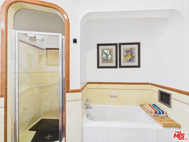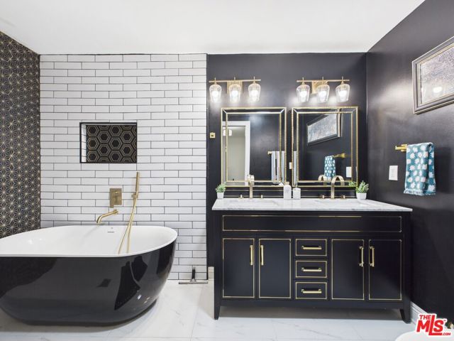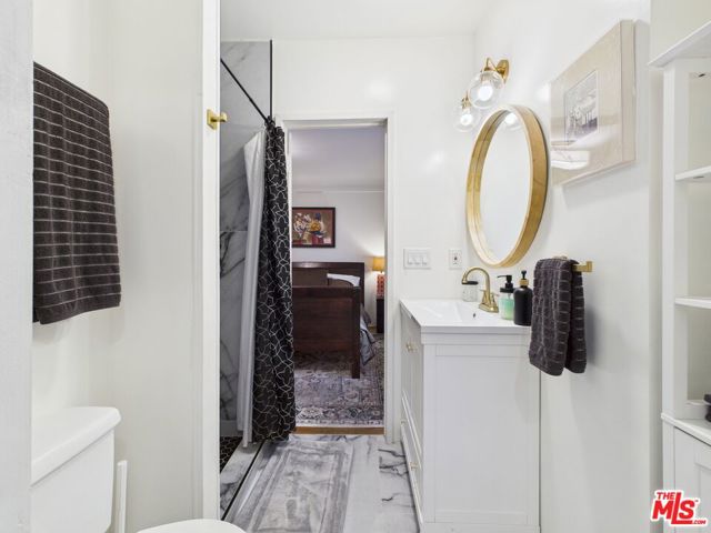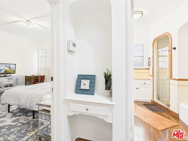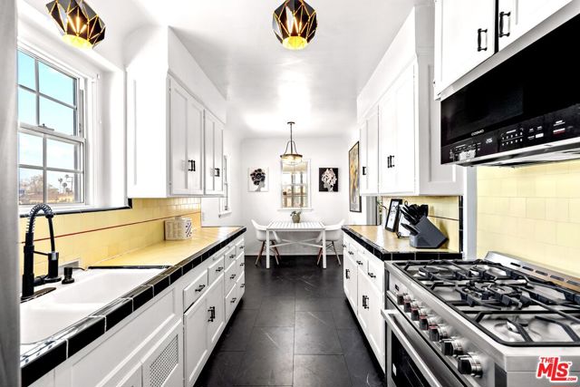 Welcome to this charming Spanish Revival 3 bedroom, 3 bath home in the heart of Los Angeles. This turnkey, income generating property is just minutes from SoFi and perfectly positioned with the World Cup next year and the Olympics following. Each bedroom offers its own full bath, providing comfort and privacy for families, guests, or shared living. The primary suite feels like a retreat with hardwood floors, a walk in closet, and a spa inspired marble bath with a soaking tub, separate shower, and dual vanities. The additional bedrooms offer great natural light, hardwood floors, and updated baths. Recent upgrades include a full re pipe in 2021, updated electrical, original hardwood floors, and new marble, tile, and laminate finishes.The gourmet kitchen features Bosch appliances, a seven burner chef's stove, and a French door refrigerator. The living and dining areas are centered around a restored fireplace, vintage Deco era fixtures, and curved plaster ceilings, blending classic 1930s character with modern updates.Outside, enjoy a private backyard with a patio, BBQ area, and garden. The two car garage provides parking, storage, or ADU potential. Additional features include a security system, and a spacious courtyard. Set on a manicured corner lot less than two miles from SoFi Stadium and minutes from LAX, USC, Marina del Rey, Venice Beach, and UCLA, this home delivers style, comfort, and convenience. It is a must see in person. The space and views are even better than the photos. Call for your tour today