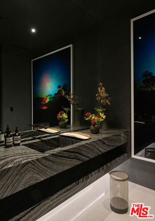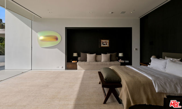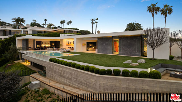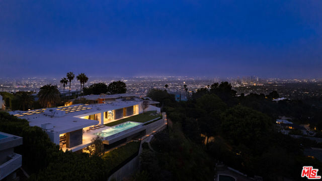 A stunning piece of architecture designed by XTEN Architects and recipient of the AIA Los Angeles Award for most influential architecture of 2020. Inspired by Stanley Kubrick's Space Odyssey and set on a promontory on the most prime cul-de-sac in the Bird Streets. Enter through a private courtyard into high ceilings infused with natural light, walls of glass and polished terrazzo floors. Stylish and sophisticated with incredible walls for art, the property offers jetliner views overlooking Los Angeles to the ocean. Large living room, incredible kitchen/family room, professional theater, gym, dance studio, office, and much more. There is an incredible primary suite with dual closets and huge spa-like bathroom with steam shower and soaking tub. The entire house overlooks a spectacular infinity pool and large grassy yard. Additional amenities include an 8-car subterranean showcase garage. Show to pre-qualified clients only.