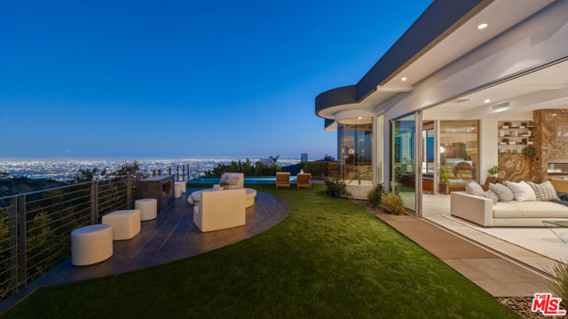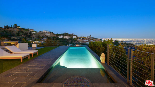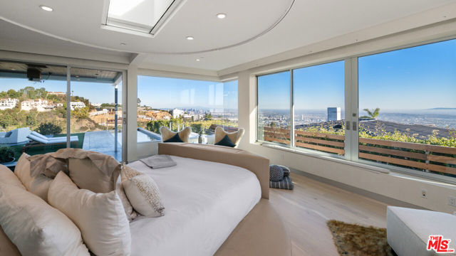 Perched atop the coveted Bird Streets in Doheny Estates, 9353 Nightingale Drive is an architectural triumph that seamlessly blends modern luxury with breathtaking panoramic views. This exquisite residence boasts an open-concept design, where soaring ceilings, floor-to-ceiling glass walls, and expansive living spaces create an effortless flow between indoor and outdoor living. The sleek chef's kitchen is a culinary dream, featuring top-of-the-line appliances, custom cabinetry, and a stylish islandperfect for both entertaining and everyday living. Just beyond, an outdoor BBQ and seating area provide the ideal setting for al fresco dining. The primary suite is a private sanctuary, offering head-on city views, a cozy fireplace, a serene seating area, and a spa-inspired bath. A dream walk-in closet, designed with double functionality as a panic room, adds a touch of discreet sophistication. For ultimate entertainment, the home has a dedicated media room, a fitness area, and a full bar with seating, accompanied by a temperature-controlled wine cellar. The resort-style backyard is an oasis of relaxation, complete with a stunning pool, fire pit, and multiple outdoor lounge spaces all set against the dazzling backdrop of Los Angeles' skyline. Other features include an elevator, a fireproof room, a state-of-the-art security system, and a two-car garage equipped with lifts to accommodate additional vehicles. Just moments from the world-class dining, shopping, and entertainment of the Sunset Strip, this extraordinary residence presents a rare opportunity to own one of the most iconic homes in Los Angeles.