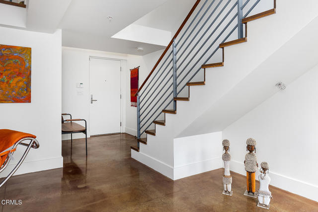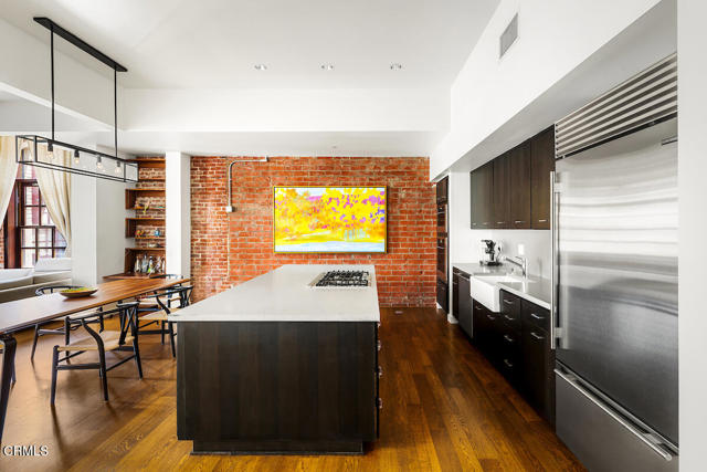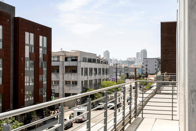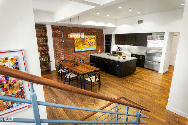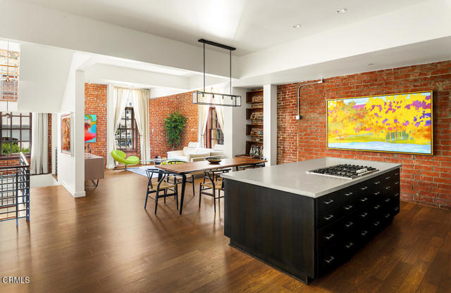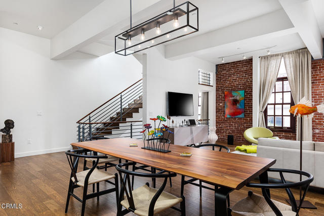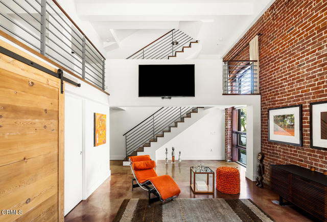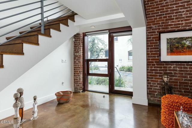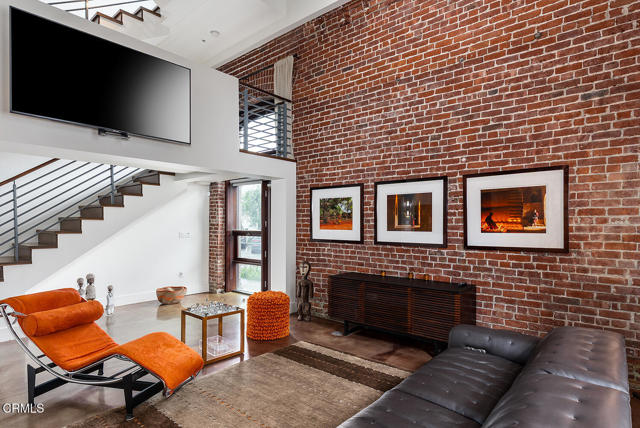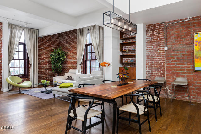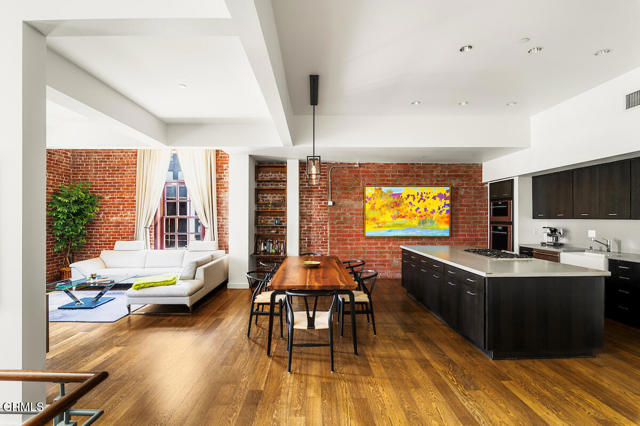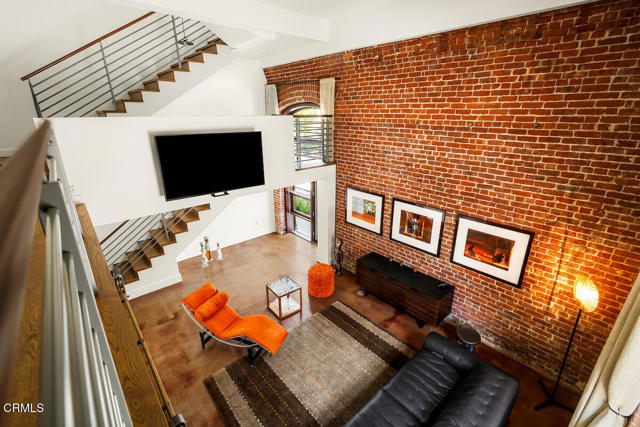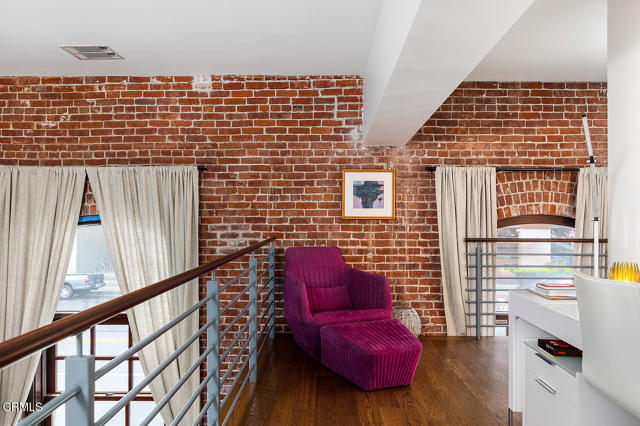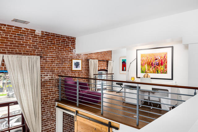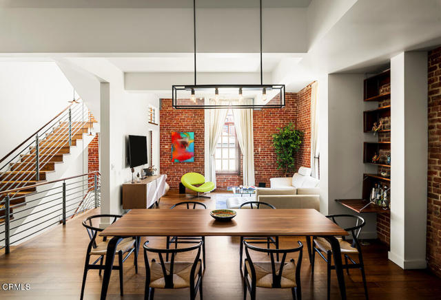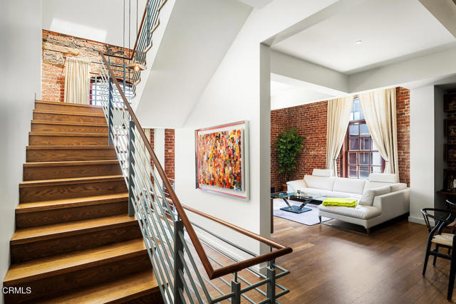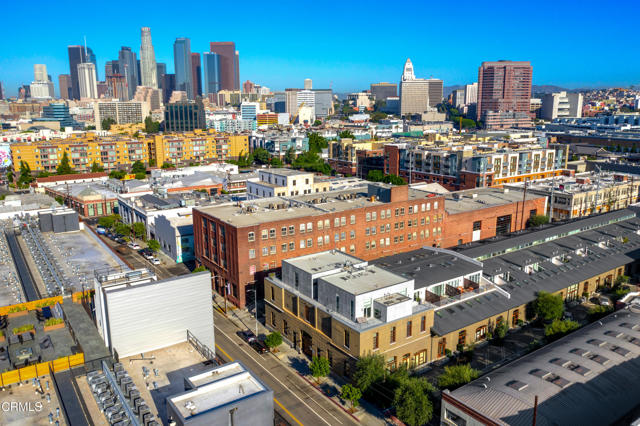Urban Serenity at the Barn Lofts | Prime Arts District End Unit. Discover a rare blend of industrial character and modern comfort in this stylish end unit at the highly coveted Barn Lofts in the vibrant Arts District. Flooded with natural light, the residence showcases exposed brick walls, warm hardwood floors, and an inviting, open layout. The flexible first floor live/work space offers a variety of uses from a private office or a bedroom, with a separate office, full bath and endless creative potential--ideal for artists, entrepreneurs, or anyone seeking versatility. A mezzanine provides the perfect space for an additional office, reading lounge, or studio. Upstairs, the main living level features a spacious kitchen that flows seamlessly into the dining area and living room, creating an ideal setting for entertaining. A welcoming foyer, powder room, laundry, and walk-in pantry complete the floor.The top level is devoted to the expansive primary suite, which opens to a wrap-around terrace with sweeping city views--a perfect retreat for morning coffee or evening relaxation.Additional highlights include Two assigned indoor garage spaces by entry to the townhome Ample guest parking in a gated area just outside your front door One of the most architecturally distinct buildings in the district Steps from LA's top restaurants, cafes, boutiques, galleries, and the Metro. Located in a close-knit community, this is a rare opportunity to live and work in one of LA's most dynamic neighborhoods.