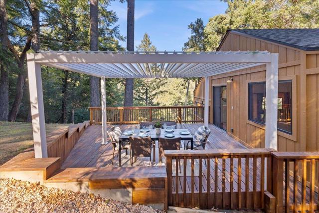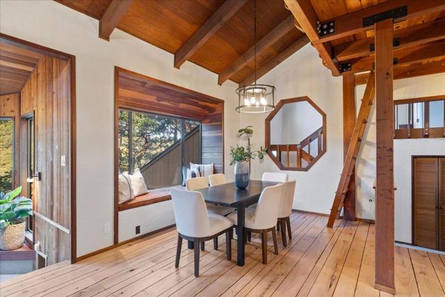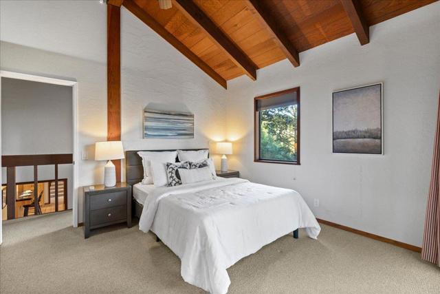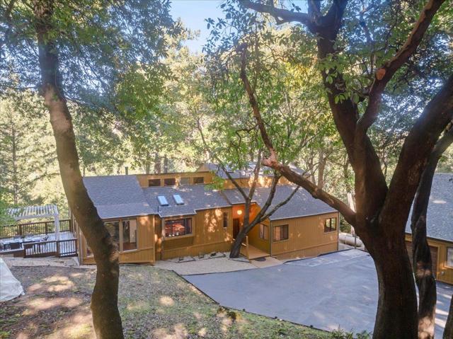 Escape to tranquility in this stunning home nestled in the forest of the sought-after Las Cumbres community. Dappled in natural light through soaring skylights and surrounded by nature, this unique home offers a seamless blend of rustic charm and modern comfort. Step inside to discover vaulted ceilings, and an open-concept layout with multiple lofts, designed for relaxation and entertaining. The kitchen features a bay window breakfast bar, perfect for morning coffee, and flows effortlessly into the dining room and dramatic wraparound glass entertaining nook invites the outdoors in, showcasing spectacular cross-canyon views. Enjoy the ultimate in outdoor living with numerous decks, ideal for gatherings, stargazing, or soaking in the hot tub under the forest canopy. A detached garage with loft and workshop provides ample space for hobbies or a creative studio. On the grounds, you'll even find an ancient Indian grinding stone, connecting this serene setting to the regions rich history where light, space, and serenity come together in perfect harmony. Las Cumbres community residents enjoy a vibrant lifestyle with tennis and basketball courts, a sports field, swimming pool, bocce ball, community BBQ area, and playground. High-speed internet, award-winning Los Gatos High School.