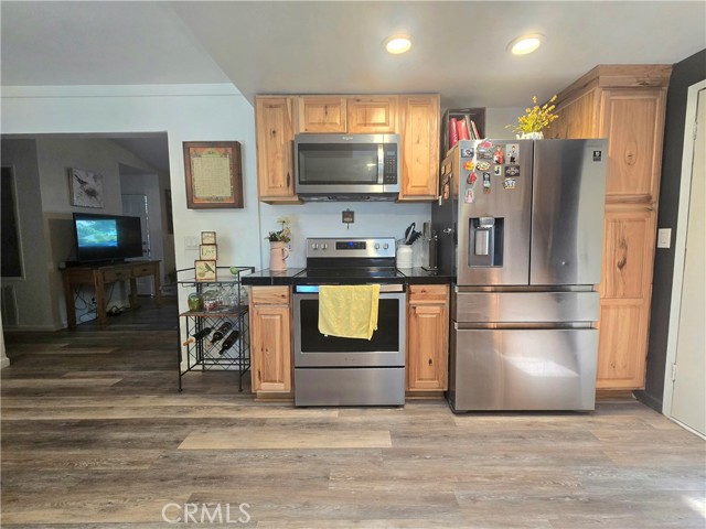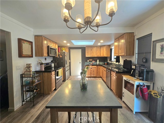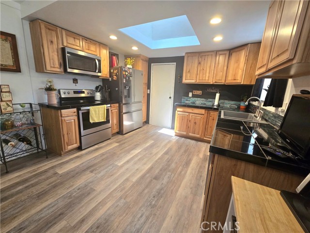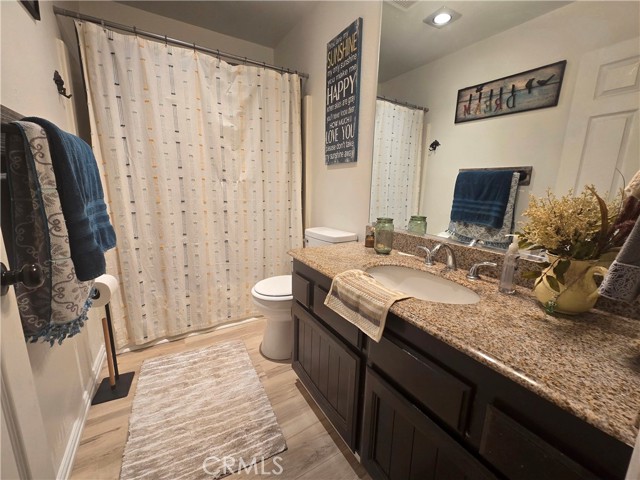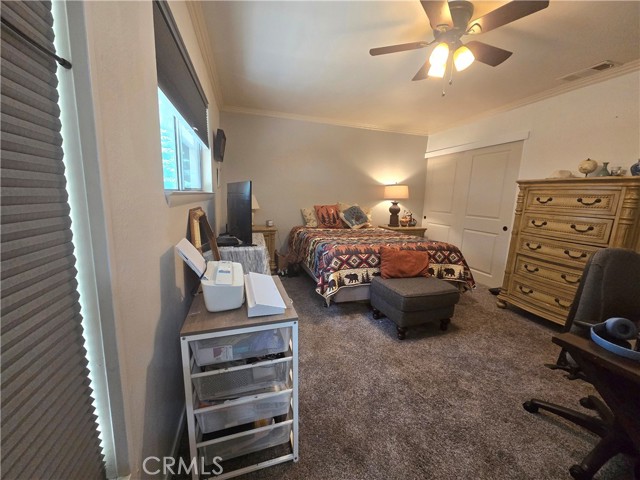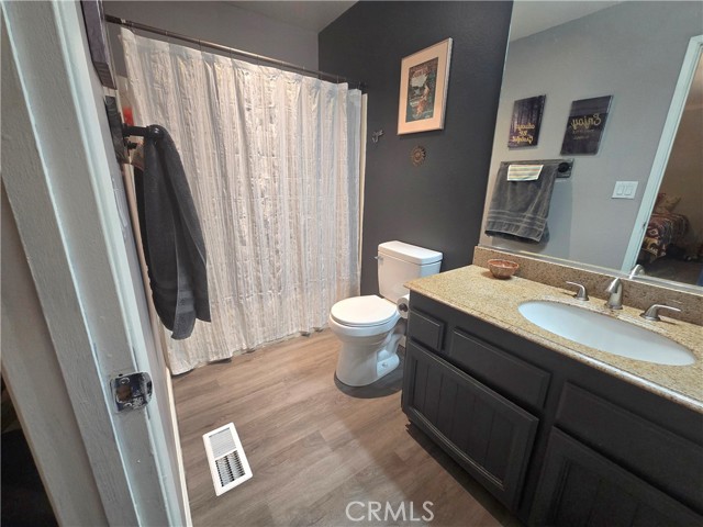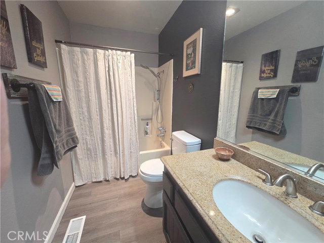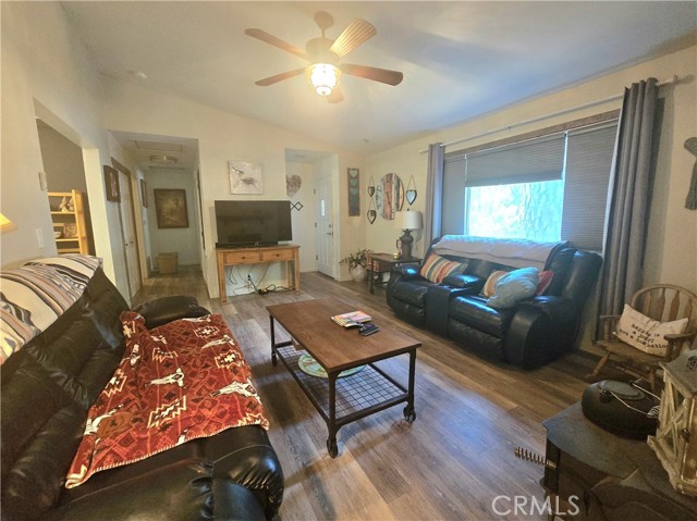 This two-bedroom, two-bathroom home showcases exceptional style and modern upgrades. Upon entering, you will be captivated by the spacious living room, complete with a fireplace and freshly painted interior. The kitchen highlights updated cabinets, upgraded lighting, and newer laminate flooring. A skylight enhances the ambiance by flooding the space with natural light. Both bedrooms are generously sized, with the primary bedroom featuring its own bathroom. Additional features include elegant crown molding and a whole-house fan. The bathrooms are equipped granite countertops, with the guest bathroom offering a walk-in shower and the primary bathroom featuring a tub/shower combination. Outside, the property boasts an expansive backyard, a newer roof, and new gutters with leaf guards. Furthermore, this home is eligible for USDA financing. Do not miss the to view this stunning property!