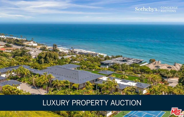 ***LUXURY PROPERTY AUCTION: 11-17 December. Accepting Starting Bids Through 10 December. Starting Bids Expected Between $15M-$20M. Earn an incentive by 10 December***A palatial single-story estate at MariSol Malibu, redefines sustainable luxury living. Built in 2023 by renowned architect Doug Burdge and inspired by the Four Seasons Hualalai, this certified net zero carbon residence captures the essence of Hawaiian resort living across two acres with breathtaking whitewater ocean views stretching to Catalina Island. The compound features tennis and basketball courts with pickleball, infinity pool pavilion, and a recently expanded backyard rivaling a sports pitch. Lush tropical landscaping and an interior glass bridge connecting main and guest houses create an island sanctuary. The nearly 2,000-square-foot primary suite opens to ocean waves while two kitchens with three center islands showcase Miele and Gaggenau appliances. Wellness amenities include gym, redwood sauna, and steam room. Built with sustainably sourced lava rock and low carbon concrete Southern California's first to meet Marin County standards this 100% electric home operates with Tesla Powerwalls and solar panels, representing the pinnacle of sustainable coastal living.