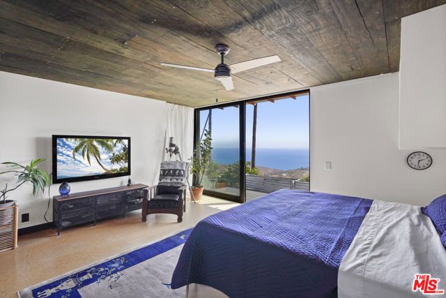 Welcome to Lockwood Road in Malibu, where contemporary design meets sustainable living. This warm modern home showcases sweeping views of the Santa Monica Bay, city lights, and Catalina Island from every front-facing room, while the Santa Monica Mountains create a dramatic backdrop out back. Crafted with intention, the residence blends wood, metal, and eco-friendly materials for an ergonomic and environmentally conscious design. The flexible floor plan includes two bedrooms plus an office or third bedroom and a 12 x 25' attic loft, featuring polished concrete and cork flooring, metal accents, and a sleek stainless-steel kitchen. Floor-to-ceiling views invite natural light and create an ever-changing panorama that captivates the senses. Private front, rear, and rooftop decks provide multiple vantage points to soak in the scenery from ocean sunrises to mountain sunsets making the home as inviting outdoors as it is inside. Sustainability is at the core of this home, with solar panels, Tesla backup batteries for seamless energy use, and rainwater collection to nourish the abundant fruit trees and gardens. A rare opportunity to enjoy modern Malibu living with a self-sufficient edge.