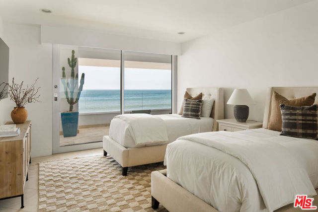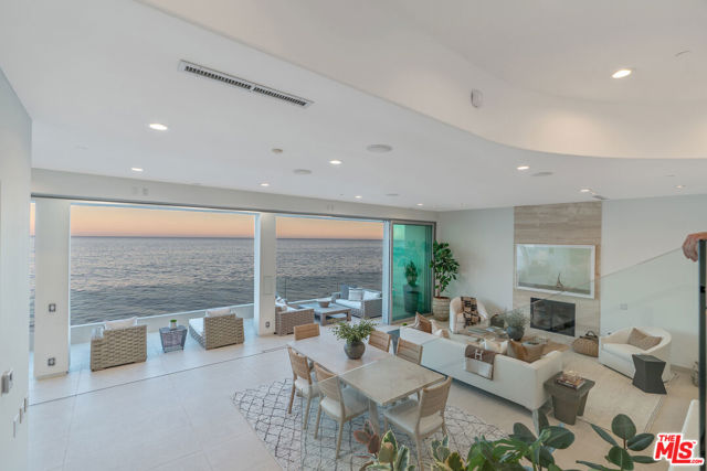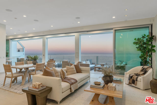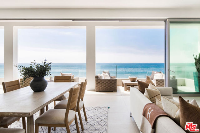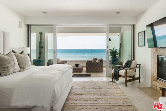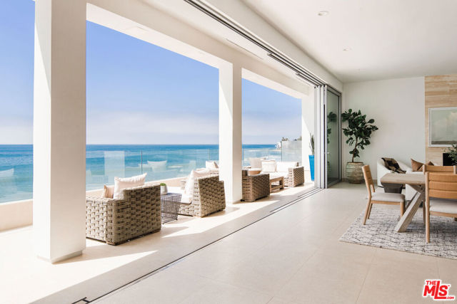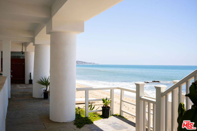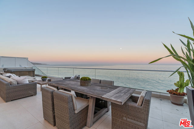 Spectacular Malibu Beachfront Retreat with 61 Feet of Ocean Frontage on private street with deepest sandy beach! Experience luxury coastal living in this expansive 3,500 sq ft Malibu beach home, perfectly situated on a rare private street with no through traffic and generous off-street parking for all guests. Boasting 61 feet of pristine beach frontage, this architectural gem offers panoramic ocean views from every room. The entry level welcomes you with soaring ceilings and dramatic walls of custom glass sliders that blur the line between indoors and out. A spacious open-concept living and dining area flows seamlessly to a wraparound oceanfront deck, perfect for entertaining or relaxing to the sound of the waves. The chef's kitchen is a showstopper, outfitted with premium appliances and stunning Taj Mahal natural stone countertops and island. The entire top floor is dedicated to a luxurious primary retreat featuring high ceilings, a cozy fireplace, new Fleetwood sliders and windows, and sweeping views of the Pacific. The spa-inspired primary bath includes a steam shower, soaking tub, and a generous walk-in closet. Step outside to your private rooftop veranda nearly 800 sq ft of outdoor living space with an ocean-view spa and lounge area, rarely found in Malibu. The lower level hosts three spacious guest suites, each with en suite bathrooms and ocean views. A private deck offers yet another peaceful spot to take in the beauty of the coastline. Follow the newly rebuilt staircase down to your own private sandy beach terrace complete with an outdoor shower and oversized storage area for surfboards and beach gear. This exceptional property combines modern luxury, privacy, and timeless oceanfront appeal a rare opportunity to own a true Malibu escape.