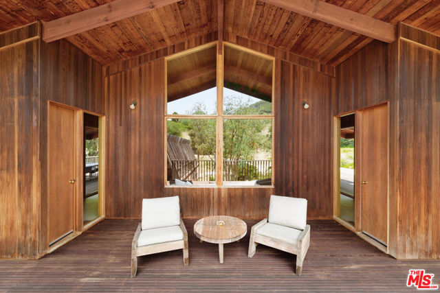 A Zen-Inspired Architectural Retreat in the Heart of Malibu. Discover one of Malibu's most distinctive architectural gems - an Asian-influenced, post-and-beam redwood and walnut sanctuary set on 10 private acres of rolling hills. This custom-designed retreat offers a truly tranquil lifestyle, where panoramic mountain views and a profound connection to nature create a serene, creative haven. The great room features soaring beamed ceilings and expansive windows that flood the home with natural light and frame the majestic landscape. The open kitchen offers Miele appliances while the primary suite is a private sanctuary with sweeping views and direct access to a large deck that wraps around the house, offering wide spaces for entertaining or lounging in the fresh air. Truly an ideal space to unwind, reflect, or ignite your next artistic endeavor, whether it be a screenplay, novel, album, or painting. A versatile loft adds flexibility as a studio, office, or additional sleeping area. Formerly restored by actor/director Vincent Gallo, the property exudes creativity and artistic energy. Outdoors, the grounds offer a graceful meditation ramada and matching pavilion bridge set over a seasonal stream; while meandering paths offer walks through your own canyon adorned with redwoods, oaks, seasonal waterfalls, and creeks. With zoning for light agriculture and equestrian use, there's room to expand, create, or cultivate. Ample parking makes entertaining and filming effortless, while proximity to Westlake Village, Malibu beaches, schools, shopping, lakes, golf, and tennis clubs ensures convenience without compromise. Owner has an expired permit for a 1,691sf art barn. Prop is not in Coastal Commission. Many possibilities abound.