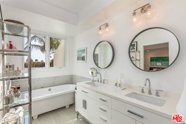 This stunning townhouse is the largest in the exclusive Portico of Malibu community. Thoughtfully upgraded, it features newly renovated bathrooms and top-of-the-line gourmet Miele appliances. The spacious layout boasts soaring vaulted ceilings, a beautiful custom Downsview kitchen, and a luxurious primary suite with a free-standing soaking tub and an expansive closet. Offering two primary suites, an attached two-car garage, and a generous private courtyard patio, this home is perfect for enjoying the refreshing ocean breezes. Nestled within a secure gated community, residents also have exclusive access to a pool, as well as an outdoor BBQ and dining area, perfect for relaxation and entertaining. Portico is an intimate, Mediterranean-inspired enclave, exuding charm and sophistication.
