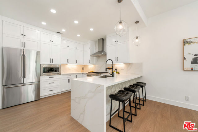 Experience refined living in this upgraded and reimagined 3-bedroom, 2.5-bath townhome, offering a rare combination of serenity, elegance, and modern design. Enter directly from street level into a spacious, light-filled corner residence with soaring ceilings and designer finishes throughout. The chef's kitchen is a showpiece, appointed with custom double-stacked soft-close cabinetry including a sleek corner lazy Susan, quartz waterfall countertop, under-mounted farmhouse kitchen sink and premium stainless steel appliances, including a Bosch refrigerator and Thermador oven and dishwasher. An inviting breakfast bar seamlessly connects the kitchen to the expansive living and dining areas. Unwind by the fireplace in the airy living room, or step out to your private patio oasis, complete with a BBQ grill, tranquil water feature and automated drip system, an ideal space for outdoor lounging or quiet reflection. The primary suite is a true retreat, featuring a dual-sided fireplace, a private balcony, and a spa-inspired bathroom with double vanities, a private water closet, a freestanding soaking tub with floor-mounted filler, and a custom walk-in closet designed for elegance and function. Two additional generously sized bedrooms offer abundant natural light and ample storage, perfect for family, guests, or a sophisticated home office. This luxury residence includes a private 2-car garage and guest parking, all within an exclusive gated community offering resort-style amenities: sparkling pool, rejuvenating spa, tennis and pickle ball courts, and a well-appointed fitness center. Just minutes from Pepperdine University, world-renowned Zuma Beach, Broad Beach, and Paradise Cove. Enjoy the convenience of nearby shopping and dining at Point Dume, Trancas Country Market and proximity to local schools, making this home a rare blend of luxury, lifestyle, and location. Discover elevated living in this lush tropical landscaped and beautifully maintained gated enclave - The Pointe at Malibu.