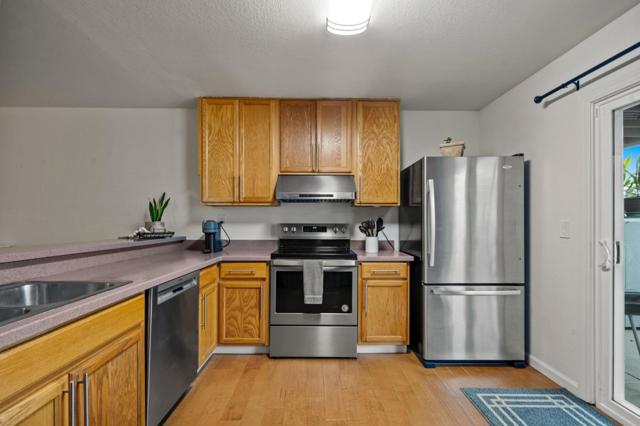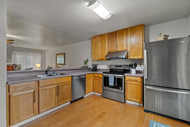 Welcome to this beautifully updated and accessible 2 bedroom, 2 bathroom ground-floor condo in the highly desirable, pet-friendly Peninsula Point community. Nestled in a quiet corner of the complex, this end unit offers both privacy and convenience, with easy guest parking just steps away. Step inside to discover a light-filled, open-concept living space featuring a refreshed kitchen with a modern layoutperfect for entertaining or everyday comfort. Elegant updated flooring flows throughout, complemented by newly tiled entryway and bathroom floors. Enjoy the practicality of an oversized pantry and in-unit washer/dryer, all designed to make daily living effortless. Thoughtful upgrades such as overhead ceiling fans and contemporary light fixtures add a touch of style and comfort throughout. Best of all, you're just a short stroll to the beach and scenic coastal trails, making it easy to embrace the Marina lifestyle. Whether you're looking for a full-time residence or a weekend retreat, this turnkey condo offers exceptional value in a vibrant, coastal community.