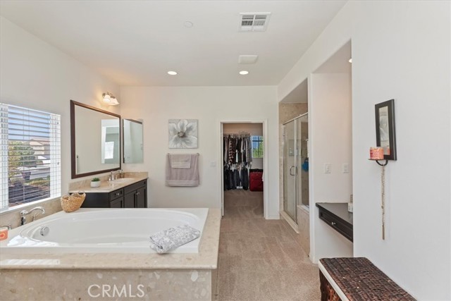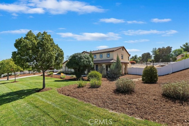 Welcome to Calder Ranch, where elegance meets endless possibility! Nestled in one of the area’s most sought-after communities, this impressive two-story residence offers the perfect blend of privacy, comfort, and space. Sitting at 3,867 sq.ft. of living space, on a 43,626 sq.ft. lot, this home is designed for both grand entertaining and everyday living. As you arrive, the stunning curb appeal and thoughtfully designed landscaping welcome you in. The massive driveway features endless room for RV parking and any and all of your toys. Plus it still boasts a 3 car garage, ensuring ample space for all your needs. Step onto the charming front porch and picture yourself enjoying warm cups of coffee. Inside, soaring ceilings and abundant natural light set the stage for that wow effect. Regal formal living and dining room with chandelier that elevates the home’s sophisticated style. A convenient downstairs office/den and full bath, offers flexibility for work or leisure. The chef’s kitchen is a dream with rich cabinetry, granite countertops, a 5-burner gas cooktop, double ovens, a massive pantry, and a spacious center island which seamlessly opens to the cozy family room with gas fireplace. Just beyond, a huge laundry/mud room with utility sink, and backyard access makes multitasking effortless. Upstairs features a generous loft, perfect for movie or game nights. The expansive primary suite is a true retreat, featuring a lounge area, spa-like bath with soaking tub, walk-in shower, dual vanities, and an enormous walk-in closet. The additional bedrooms are equally spacious, which share a another full bath with dual vanities. This backyard is a blank canvas limited only by your imagination. Whether you dream of adding a pool, sports court, guest house, need work space or simply creating the ultimate garden sanctuary, there is ample room for every vision and every toy. This home offers the perfect blend of peaceful, country-inspired living with the convenience of being just minutes from shopping, freeways, schools, and businesses. This is truly a must-see property where the potential is limitless and the lifestyle extraordinary.