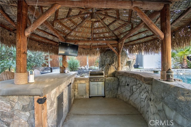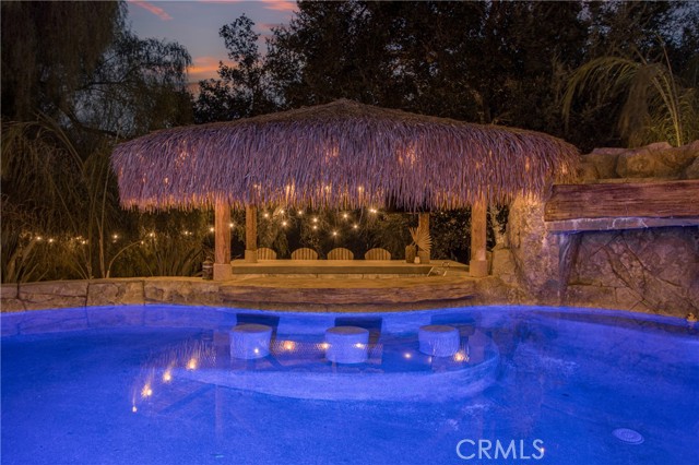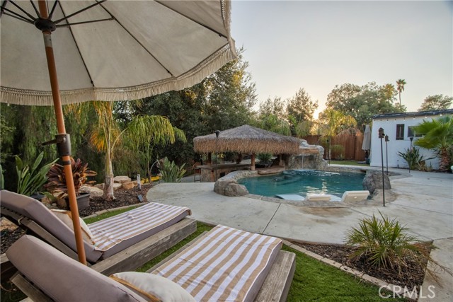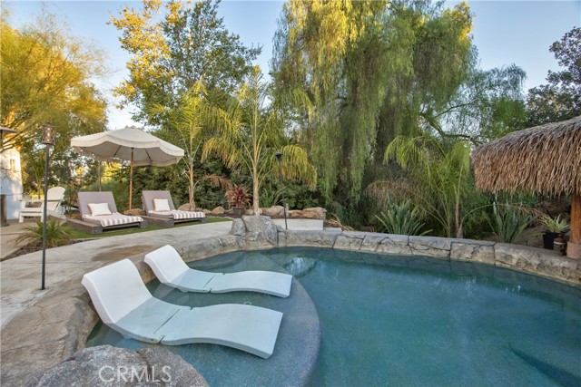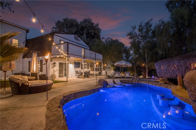 Tucked away on over two acres, this beautifully updated Menifee property blends the peaceful feel of country living with the convenience of being only minutes from shopping, dining, and freeway access. This spacious 5-bedroom, 3-bath home offers approximately 2,800 square feet of living space with thoughtful updates throughout. All three bathrooms are modernized, and one of the rooms has been transformed into a custom indoor game room and bar, perfect for entertaining. The open-concept kitchen features stylish finishes and connects seamlessly to the dining and living areas for effortless flow and family comfort. Outdoors, discover your own tropical resort-style retreat complete with a resort pool featuring a custom grotto waterfall with a three-person bench built into natural rock, in-pool barstools, a sunken bar, and both solar and heat-pump heating systems for year-round enjoyment. Just steps away, a detached shed offers endless possibilities as a pool house, entertainer’s lounge, or workshop. For BMX and Motocross enthusiasts, the property includes a fully built private bike park with jumps, berms, and open terrain—perfect for training, recreation, and hosting weekend rides or if you’re an equestrian at heart, the area can easily be transformed into a horse lovers dream with space for stables, riding trails, or a small arena. Additionally, the property includes two shipping containers (a 40-foot and 25-foot) thoughtfully placed to provide ample secure storage for tools, equipment, or outdoor gear. The 2.26-acre lot is fully enclosed with two custom-built privacy gates and highlighted by a majestic 1,000-year-old oak tree. Its mix of open and natural terrain provides endless possibilities, perfect for gardens, animals, or future additions, while offering plenty of space for outdoor living, entertaining, and recreation amidst mature landscaping. The garage has been thoughtfully converted into a full home gym, which can easily remain for fitness enthusiasts. Whether you envision a guest house, workshop, or expanded outdoor retreat, the property’s layout provides the flexibility to bring those ideas to life. Serviced by its own well and septic system, it offers both independence and modern convenience. This property offers the best of both worlds: the tranquility of a rural setting paired with the convenience of city living. The options are truly endless.