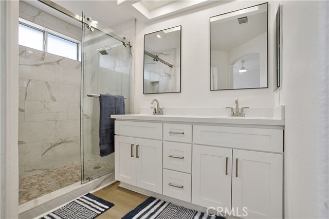 Step into refined living with this beautifully remodeled 4 bedroom, 2 bath Single Story residence in the heart of Menifee and NO HOA! From the moment you enter through the inviting front entry, you’re greeted with soaring natural light and an open layout that blends elegance with comfort. The chef inspired kitchen boasts quartz countertops, a stylish breakfast nook, premium appliances, and upgraded LED and outdoor lighting. Luxury vinyl flooring flows throughout, A convenient indoor laundry room adds comfort and functionality while all new sliding doors create a seamless connection between indoor and outdoor. The primary Bedroom offers a spa like retreat with a custom walk in shower, and Walk- In Closet, while the second bath boasts a large soaking tub framed by natural light from a dramatic skylight. Every detail has been thoughtfully upgraded, from the new roof underlayment and all new plumbing to the sleek new breaker box and bonus EV charging outlet. Outdoors, enjoy the tranquility of a private backyard enclosed by newer vinyl fencing perfect for entertaining or relaxing in style. Situated within the sought after Menifee Union School District and just minutes from upscale shopping, dining, and Temecula’s award winning wineries, this home truly lives like a model.