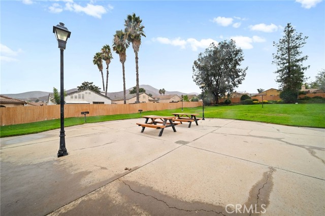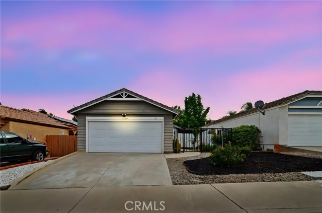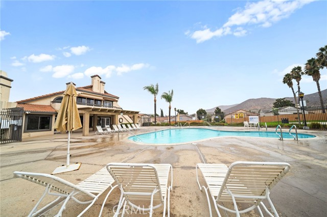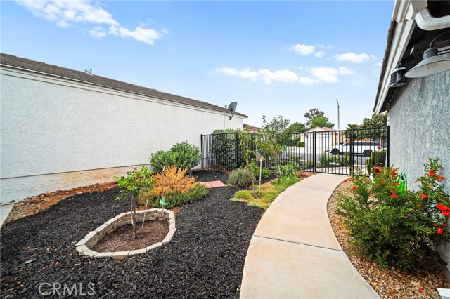 Welcome to 27780 Hillpointe Dr, a charming single-story home located in the heart of Menifee. This 2-bedroom, 2-bathroom residence offers 927 square feet of living space on a spacious 5,227 sq ft lot. From the moment you arrive, you're greeted by a gated front patio and a vibrant garden featuring fruit trees, including pomegranate, cherry, plum, and lemon guava, setting a welcoming tone. Step inside to vaulted ceilings and an open living area filled with natural light. The kitchen flows seamlessly into the living room and features a gas range, tile countertops, and an updated sink, perfect for casual entertaining or cozy nights in. The primary bedroom includes its own ensuite bathroom with a shower, while the secondary bedroom is adjacent to a full bath with a new toilet and a shower/tub combo. A convenient indoor washer and dryer setup adds to the home's functional layout. Out back, enjoy your own private retreat with a pergola-covered patio, grassy area, peach tree, cozy brick firepit, and seating area ideal for relaxing evenings or weekend gatherings. Additional upgrades include brand-new windows and a new sliding glass door that opens to the backyard. Just a short walk away, enjoy access to the community pool and park. Situated in the growing city of Menifee, this home offers a lifestyle that blends comfort, community, and convenience. With new shopping centers, schools, and easy freeway access nearby, Menifee continues to expand while still offering a relaxed suburban feel. Whether you're a first-time buyer or looking to downsize, this home is a wonderful opportunity to settle into a welcoming neighborhood with room to grow and enjoy.
