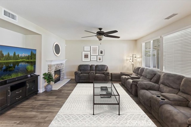 Welcome to your dream home in the highly desirable Heritage Lake community, just 150 yards from the lake via a beautifully landscaped walking path! This spacious and well-maintained home offers the perfect blend of location, comfort, and lifestyle amenities. With 3,020 sq ft of living space on a generous 8,276 sq ft lot, the home features 4 sizable bedrooms, 3 bathrooms, and a 3-car garage—ideal for growing families or those needing extra space. The interior showcases a thoughtfully designed floor plan with new plank flooring throughout the downstairs and custom interior paint, creating a fresh and inviting atmosphere. The main floor full bathroom adds flexibility and convenience for guests or multi-generational living. At the heart of the home, the kitchen boasts granite countertops, a center island, and stainless steel appliances, and it opens seamlessly to a large family room highlighted by a beautiful stacked stone fireplace—creating a warm, comfortable space for everyday living and entertaining. Step outside to your private backyard retreat featuring lush green landscaping, new fencing, a full-length covered patio with ceiling fan, extensive hardscape, and a cozy firepit—an ideal setting for outdoor relaxation and gatherings in the evenings. The 3-car garage includes built-in storage racks, adding extra functionality and organization. A welcoming front porch enhances the home’s curb appeal and provides a charming entry. Heritage Lake is a vibrant master-planned community designed for connection, recreation, and convenience. Residents enjoy access to an abundance of amenities, including a private lake, scenic walking trails, swimming pool, children’s water park, sports courts, a welcoming clubhouse, and more. Nearby, you’ll also find tennis and pickleball courts for additional recreation. The home is within walking distance to local schools and offers quick access to the lake—just 150 yards from the front door to the lakefront area—through a beautifully maintained path at the end of the cul-de-sac. Don’t miss your chance to enjoy the best of Heritage Lake living in this beautiful home!