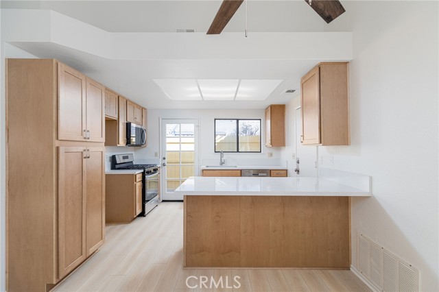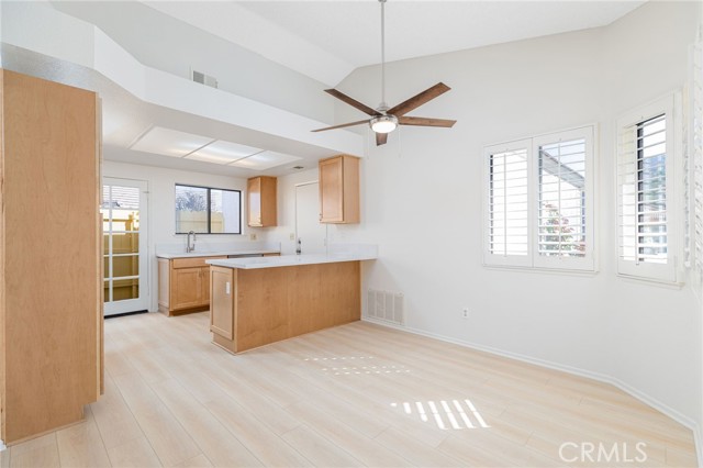 Welcome to a fully refreshed single story home that is truly turnkey and move in ready. The living room is filled with natural light and centered around a cozy fireplace. The interior features fresh paint, NEW luxury vinyl plank flooring, and NEW window treatments with louver and plantation shutters. The kitchen has been completely remodeled with NEW maple cabinets, NEW countertops, NEW sink, NEW garbage disposal, NEW dishwasher, and NEW stove. Both bathrooms feature NEW tile, NEW sinks, NEW lights, NEW mirrors, and NEW toilets. The oversized two car garage includes a NEW garage door opener, and the front yard is equipped with a NEW sprinkler system. The fully fenced backyard provides a clean slate ready for your personal touch while maintaining low upkeep. This home is less than a mile from Menifee Global Medical Center, 1.3 miles to the 215 freeway, and served by a highly regarded school system. The LOW HOA offers a community park, pool, spa, and clubhouse with event space, adding comfort and value to everyday living.