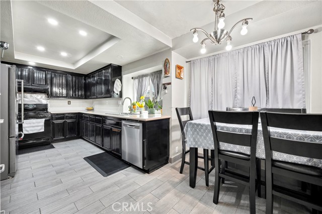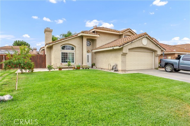 Spacious 5-Bedroom Home in Menifee Lakes Country Club. This well-maintained two-story home offers 5 bedrooms and 3 full bathrooms, with 2 bedrooms conveniently located on the first floor—perfect for multi-generational living, guests, or a home office. Enjoy a comfortable layout with vaulted ceilings and a fireplace in the living room, creating a welcoming space for relaxing or entertaining. The kitchen features dark-stained cabinets and a cozy breakfast nook, with everything you need for daily meals and gatherings. Upstairs, the primary suite includes a large bathroom, offering plenty of space and privacy. The home has been thoughtfully updated with energy-efficient windows to help keep utility costs down. Located in the desirable Menifee Lakes Country Club community, you'll have access to great amenities including a pool, spa, golf course, picnic areas, barbecue spaces, and a playground.