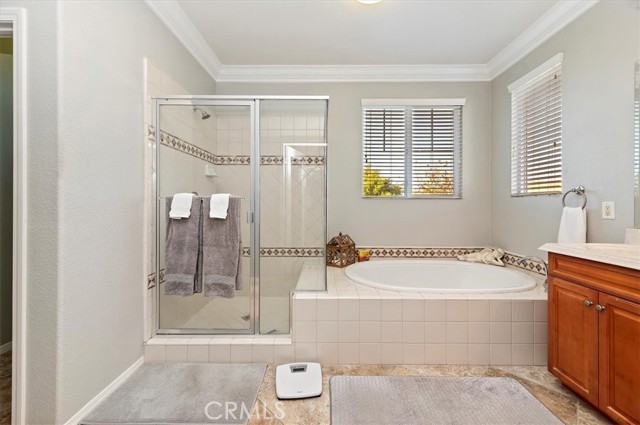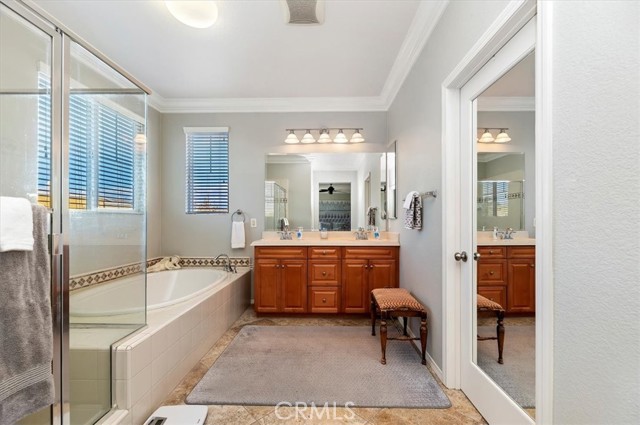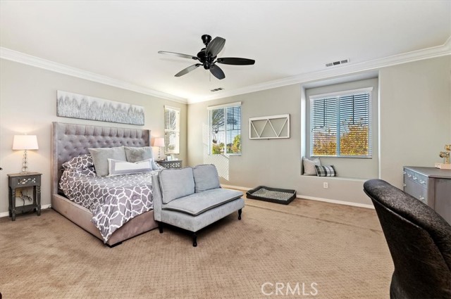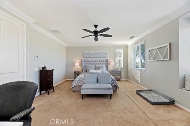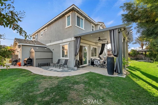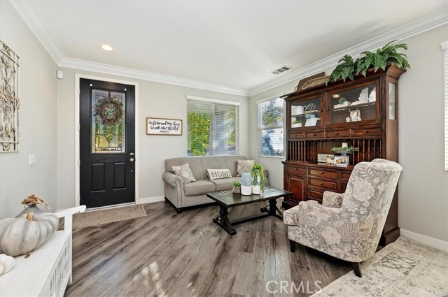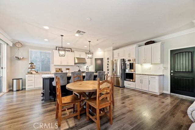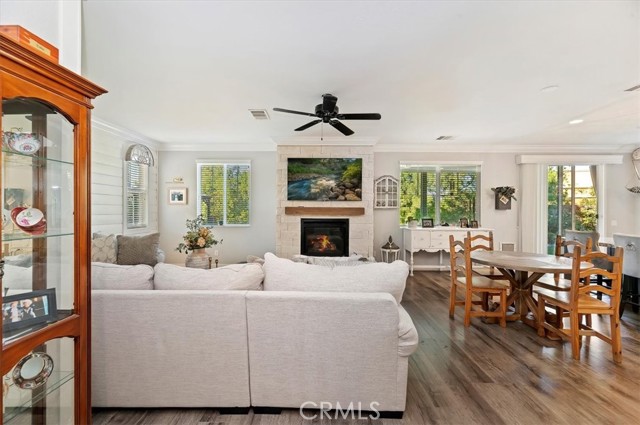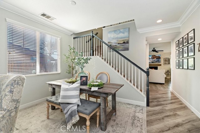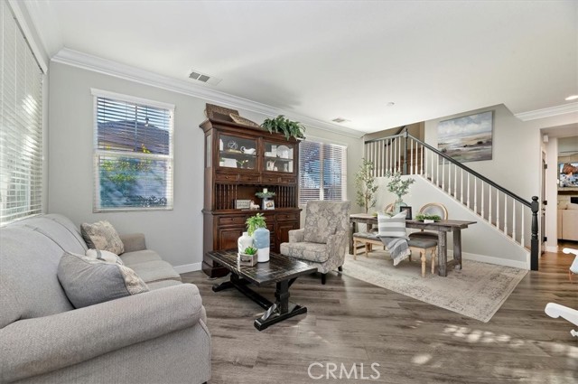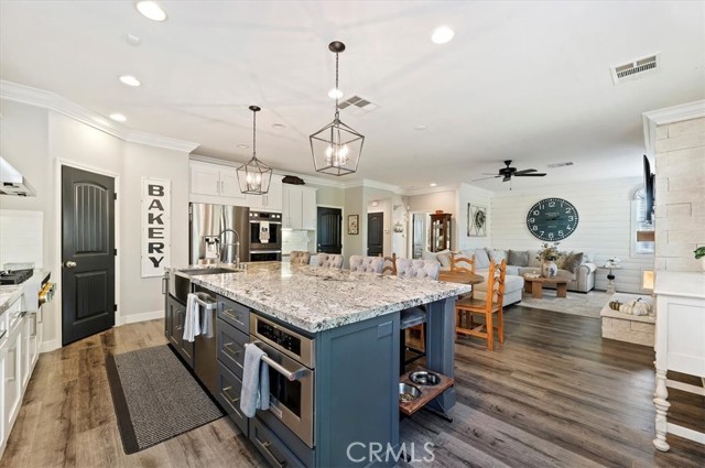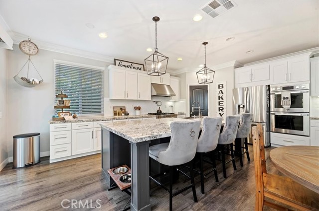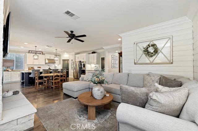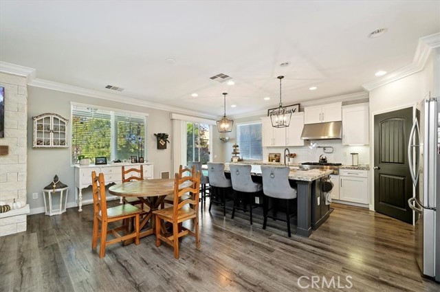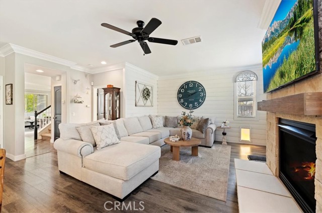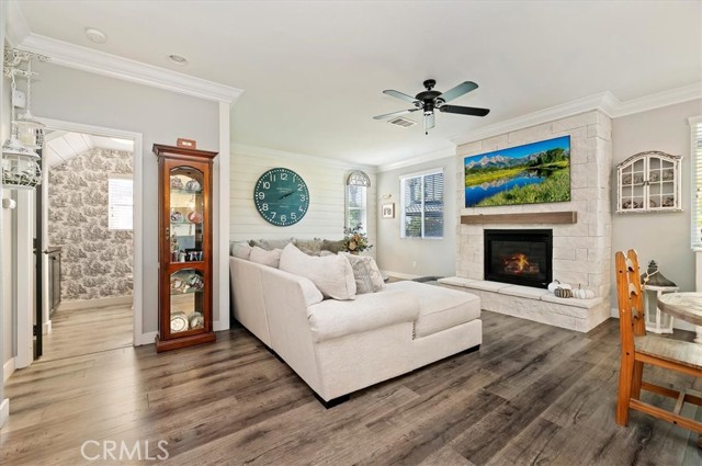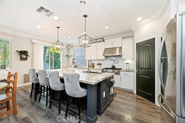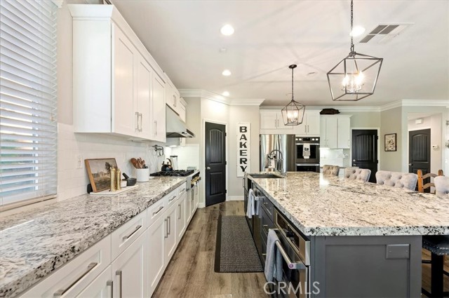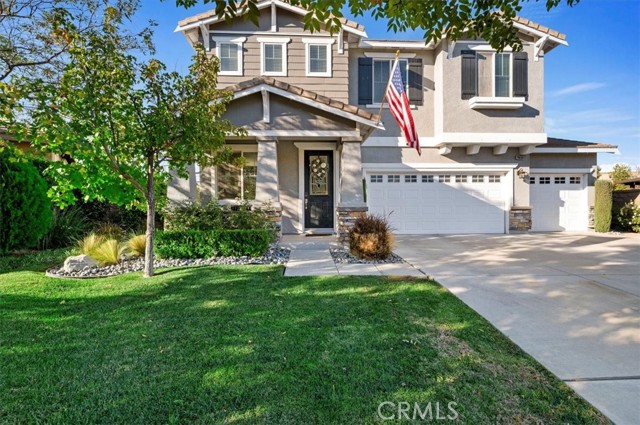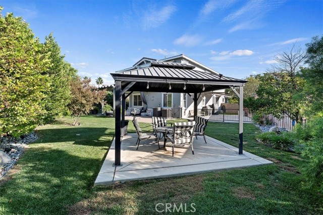 Motived Seller! Price reduced $20,000. Open to offers! Turn Key Home in Menifee, a beautiful gated community of The Lakes! This home is absolutely stunning. Remodel, Open floor plan with 2579 Sq ft 4 bedroom, 3 baths. Newly updated wood laminate flooring, including baseboard, and crown molding. The kitchen has been remodeled with new cabinets glide closing drawers, chefs dream double ovens, range & cooktop, a pot filler. Granite countertops. You will love the extended island seating up to 6. The family room has a brand new stone fireplace, hearth and mantle. The backyard landscape is an entertainer's delight. The patio with pavers, alumawood cover with fans and lights. There is an additional sitting area with a free standing gazebo. The dog run has plenty of concrete and artificial turf. It is gated and has a motion light when the dog enters. Backyard has lights in flower beds.
