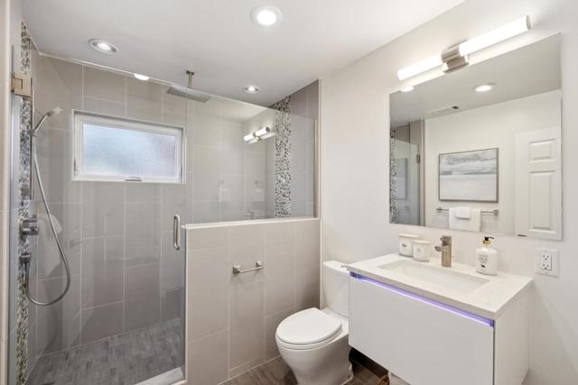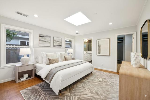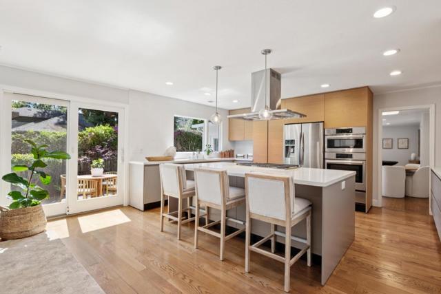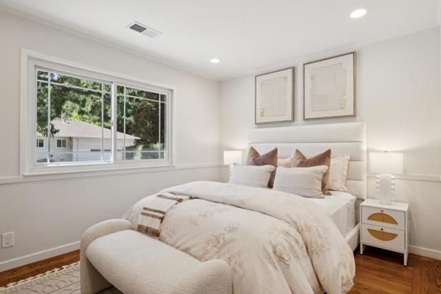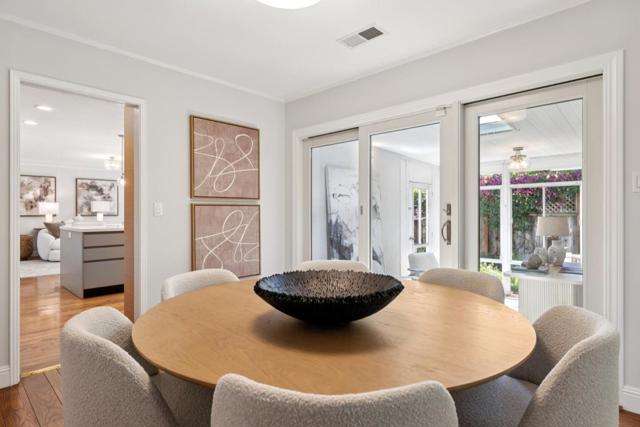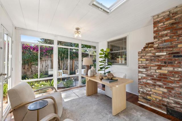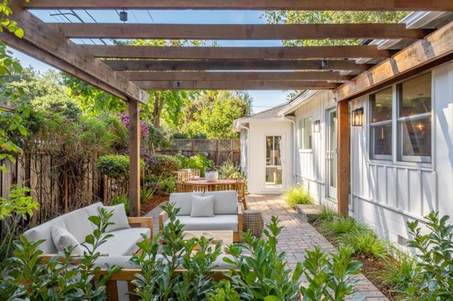 Situated on a desirable corner lot in Menlo Park's coveted Menlo Oaks neighborhood, this extensively updated residence blends modern style, everyday comfort and Silicon Valley convenience. A welcoming front porch leads to a light-filled living room with a cozy fireplace and expansive picture windows, while the adjacent dining area provides a seamless flow for both intimate dinners and larger gatherings. At the heart of the home, the remodeled kitchen-family great room is ideal for entertaining and daily living, featuring quartz countertops, a large center island with seating and top-tier stainless appliances including a Wolf cooktop, Bosch ovens and dishwasher, and a Samsung French-door refrigerator. The primary suite offers dual walk-in closets and a refreshed bath with dual sinks and a spacious shower. Two additional bedrooms share a remodeled hall bath, and a dedicated home office creates the perfect remote work setting. Outdoors, multiple al fresco dining and lounge areas unfold beneath a charming pergola amid mature landscaping. Energy-efficient features include solar power, 240V EV charger, tankless water heater and Andersen dual-pane windows. Close to top Menlo Park schools, Stanford, downtown Palo Alto, Meta and Hwy 101, this home offers modern living in a prime location.
