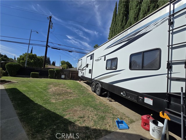 Large lot in a great location! This charming home, just off Olive Ave, sits at the end of a quiet court in an established neighborhood. Offering 3 bedrooms, 2 bathrooms, and 1,862 sq. ft. of living space, it features new flooring in the kitchen, family room, and hallways, with carpet in the bedrooms. The family room is warm and inviting with a cozy fireplace and built-in shelves. The standout of this property is the large 10,000+ sq. ft. lot. The backyard is perfect for entertaining with a covered patio, horseshoe pits, and an outdoor fireplace. Additional highlights include RV parking with backyard access from the main court, plus two double gates along the back fence providing direct access to Olive Ave. Don’t miss out on this fantastic opportunity!