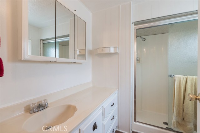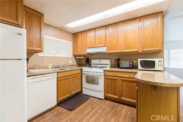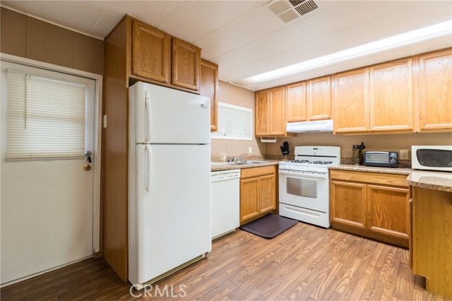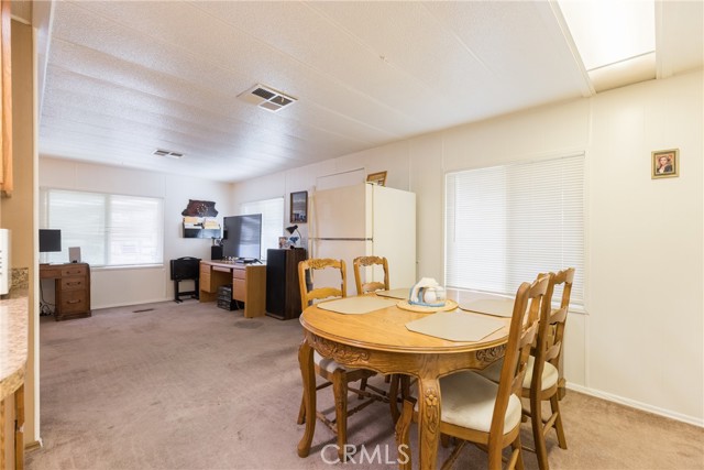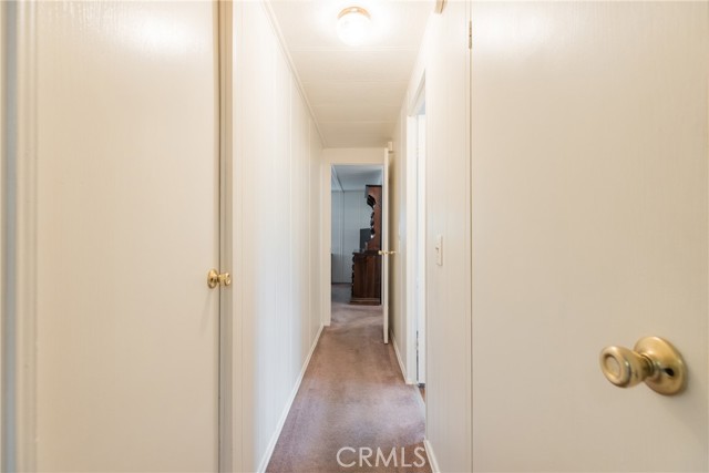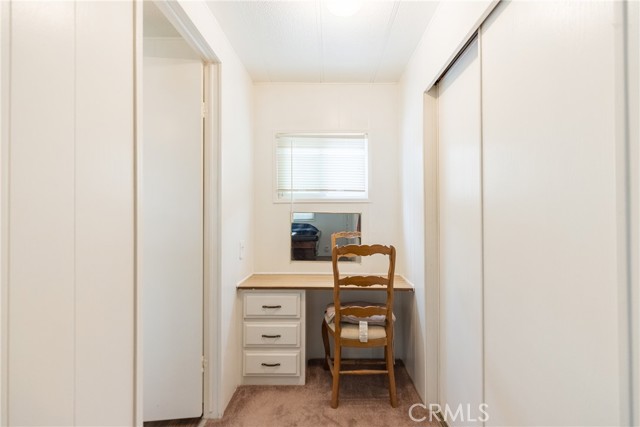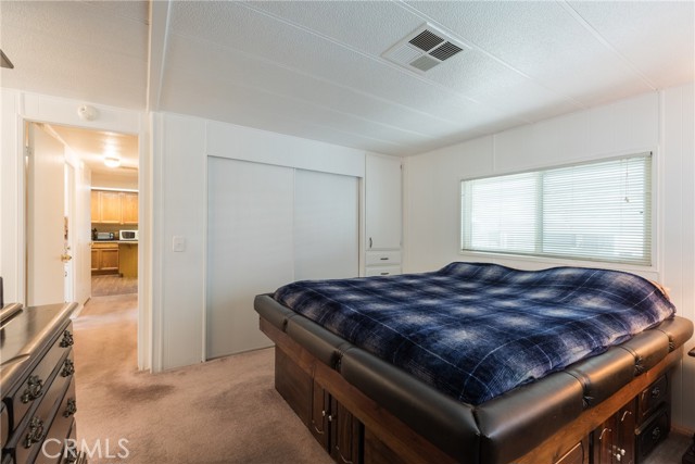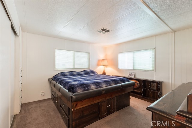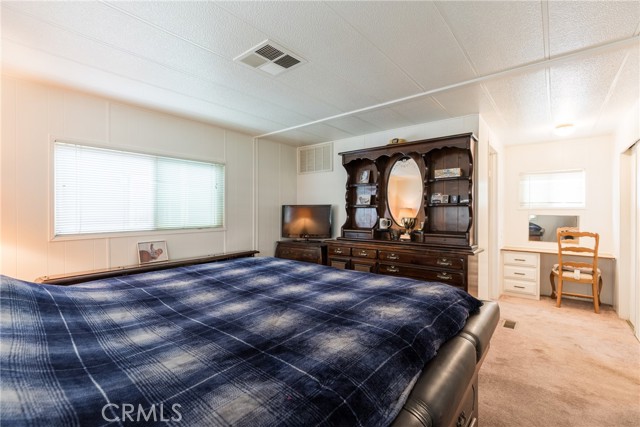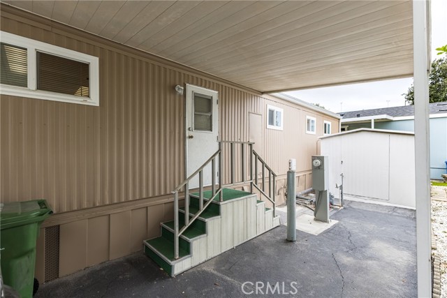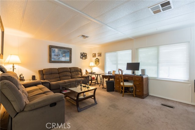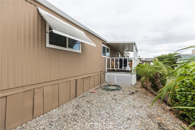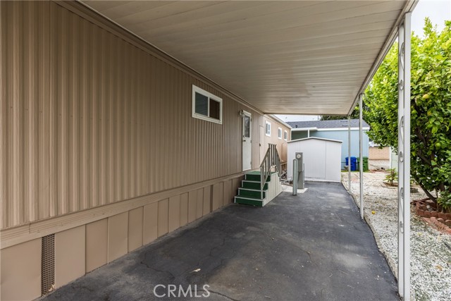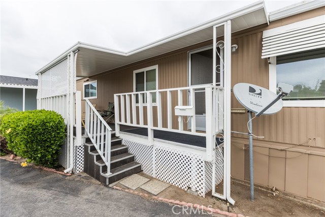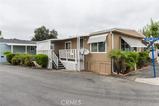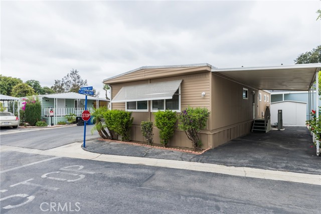 This double-wide mobile home with 2 bedrooms and 2 baths, including an ensuite primary bedroom and bath, is located within a 55+ senior park and sits proudly on the quiet corner on an inside-of-the-park location. Only one neighbor next to and one behind this one. Â It is not facing a busy street yet is close to freeway access, shopping and transportation. Â It is beautifully landscaped, and the coach has newer electric, newer full copper plumbing, newer dual paned windows and the roof was replaced almost 10 years ago and is in good condition. There is some laminate flooring and some carpeting, the kitchen was recently upgraded and has a pantry and extra cupboards. Â The home has central refrigerated air conditioning as well as central heating and there is a double attached tandem carport and a shed included. The Washer, Gas Dryer and one Refrigerator are included as well. You will enjoy sitting on your expanded, covered front porch! Â The amenities of the park include a swimming pool, clubhouse, on-site management and a well-cared for community.
