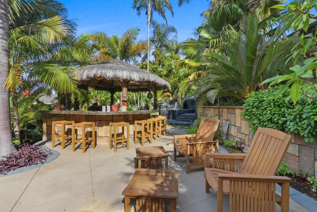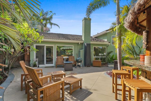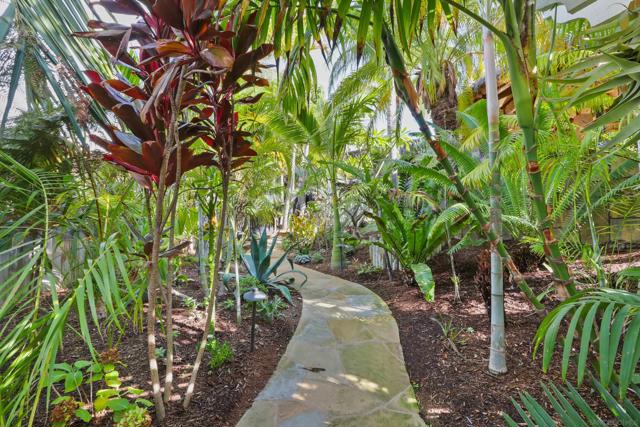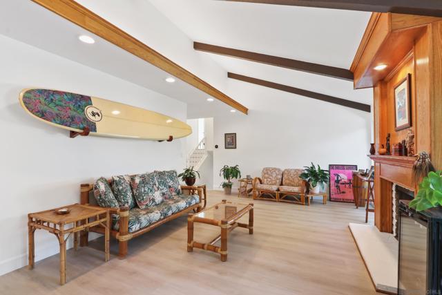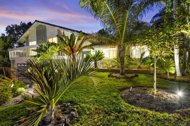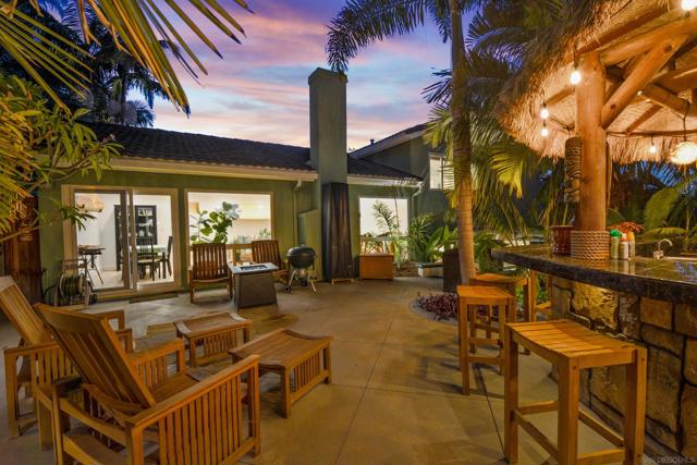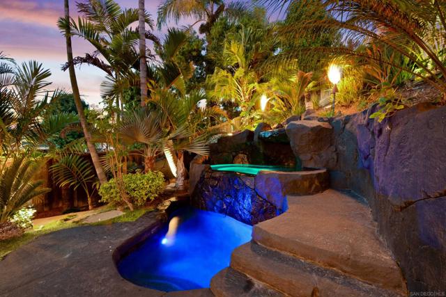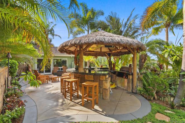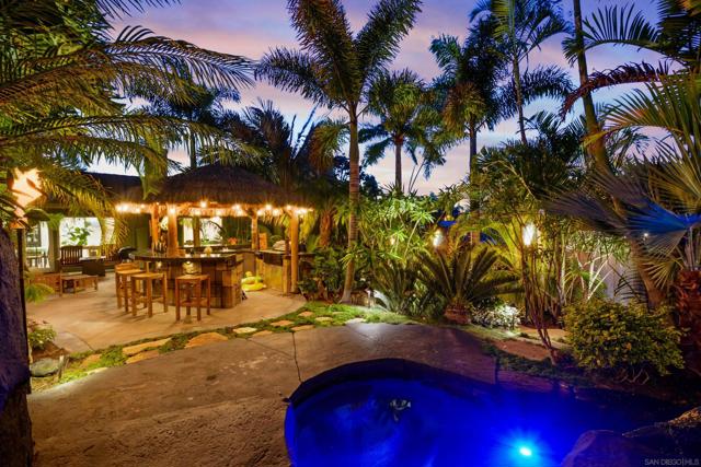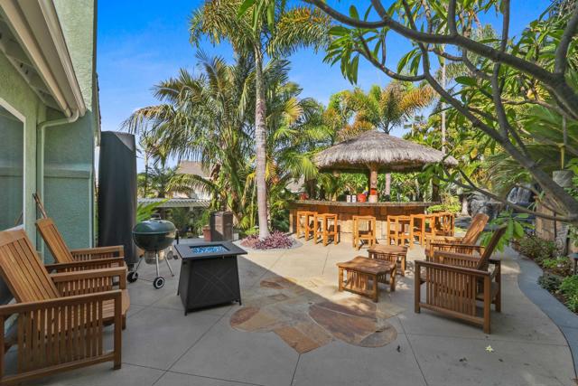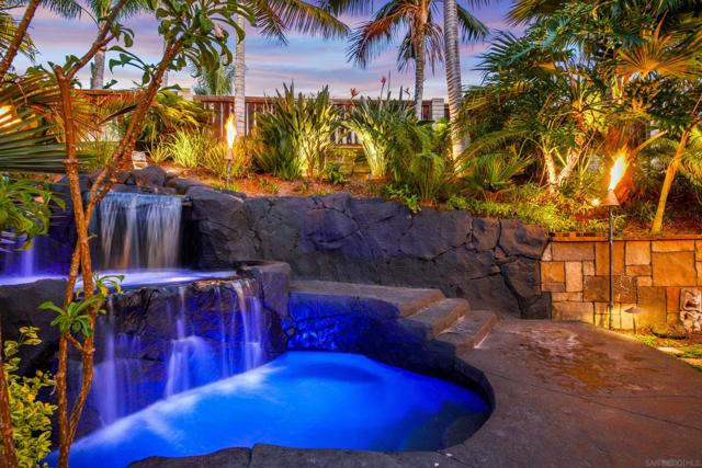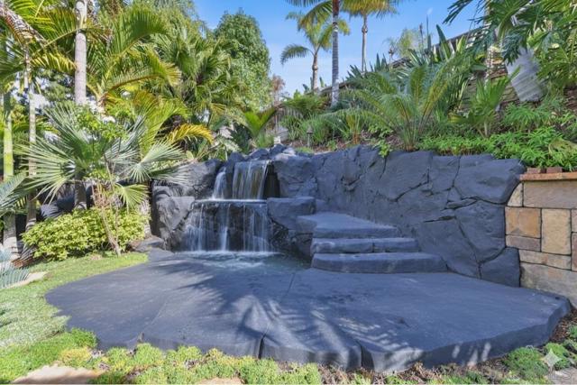 Welcome to this beautifully maintained tri-level home in the highly desirable La Paz neighborhood of Mission Viejo. This popular San Lorenzo floor plan features vaulted ceilings with exposed wood beams, light gray vinyl wood-look flooring, and abundant natural light. The fourth bedroom has been converted into a cozy den with a brick fireplace and custom oak built-ins, perfect for an office, library, or media space. The bright kitchen and dining area overlook the backyard, a true tropical paradise. Enjoy a spacious patio surrounded by over a hundred different species of palm tree, a custom-designed grotto with a waterfall flowing over the spa and into a small dipping pool, and a tiki-style bar — perfect for entertaining, relaxing, and soaking up Southern California life. With neutral tones throughout, a functional layout, and charming indoor-outdoor flow, this home combines comfort, character, and location in one of Mission Viejo’s most sought-after communities. Known for its private membership to Lake Mission Viejo, tree-lined streets, award-winning schools, and close proximity to golf courses, parks, shopping, and restaurants, this home offers the ideal blend of community and convenience.
