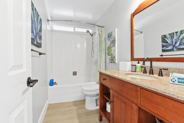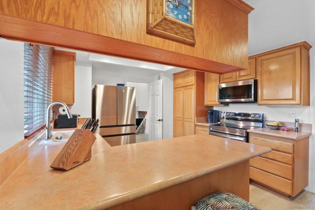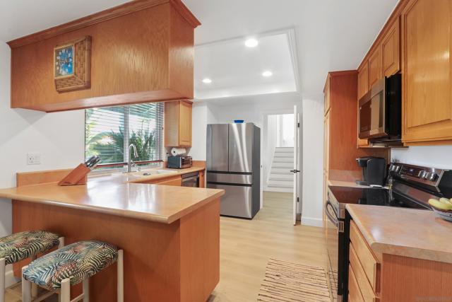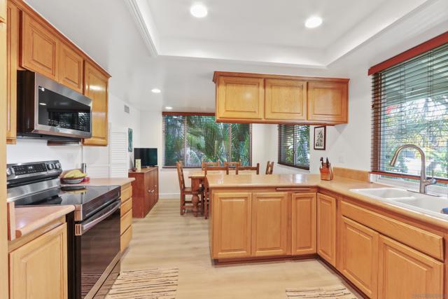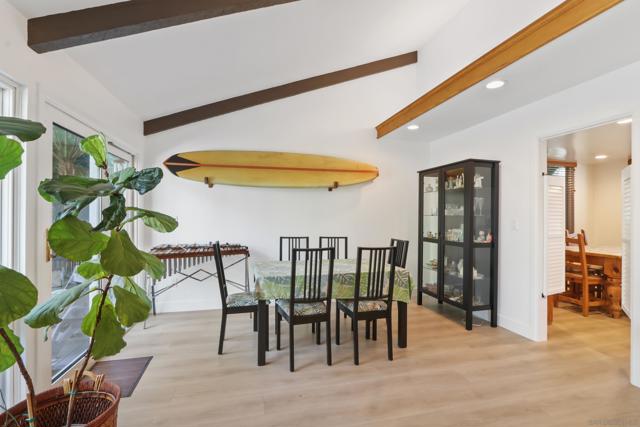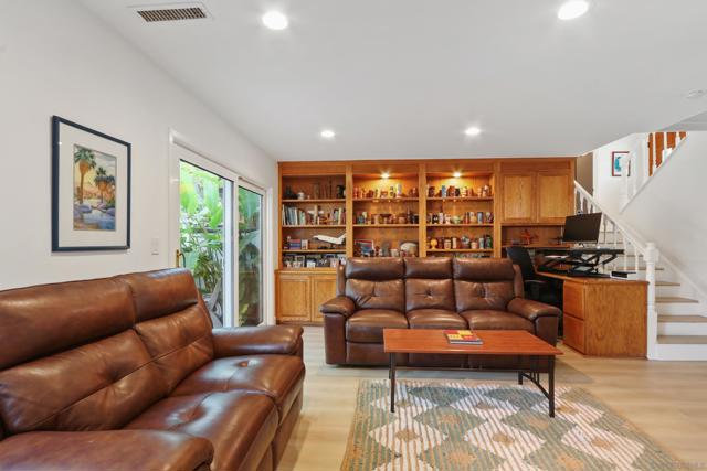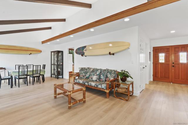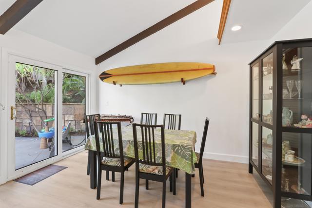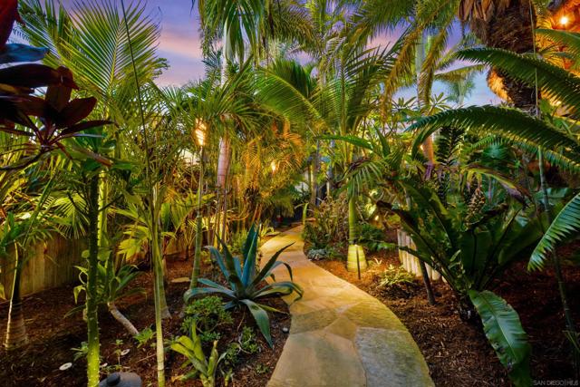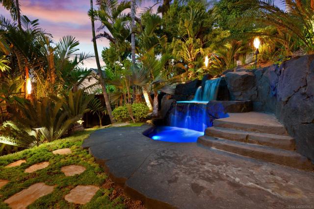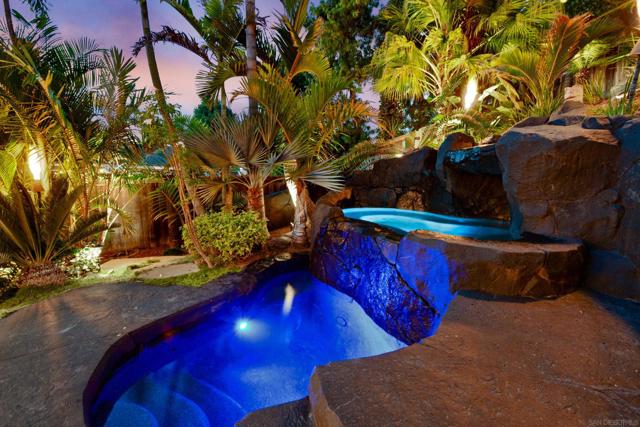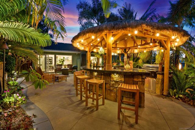 Welcome to this beautifully maintained tri-level home in the highly desirable La Paz neighborhood of Mission Viejo. This popular San Lorenzo floor plan features vaulted ceilings with exposed wood beams, light gray vinyl wood-look flooring, and abundant natural light. The fourth bedroom has been converted into a cozy den with a brick fireplace and custom oak built-ins, perfect for an office, library, or media space. The bright kitchen and dining area overlook the backyard, a true tropical paradise. Enjoy a spacious patio surrounded by over a hundred different species of palm tree, a custom-designed grotto with a waterfall flowing over the spa and into a small dipping pool, and a tiki-style bar — perfect for entertaining, relaxing, and soaking up Southern California life. With neutral tones throughout, a functional layout, and charming indoor-outdoor flow, this home combines comfort, character, and location in one of Mission Viejo’s most sought-after communities. Known for its private membership to Lake Mission Viejo, tree-lined streets, award-winning schools, and close proximity to golf courses, parks, shopping, and restaurants, this home offers the ideal blend of community and convenience.