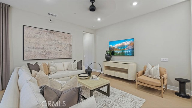 This three-story townhome is host to an open floorplan shared between the kitchen, living and dining rooms, with direct access to an outdoor room through sliding glass doors. A secondary bedroom at the back is ideal for overnight guests or a home office. A loft and three bedrooms occupy the second floor, while the top level has a spacious bonus room and outdoor terrace.