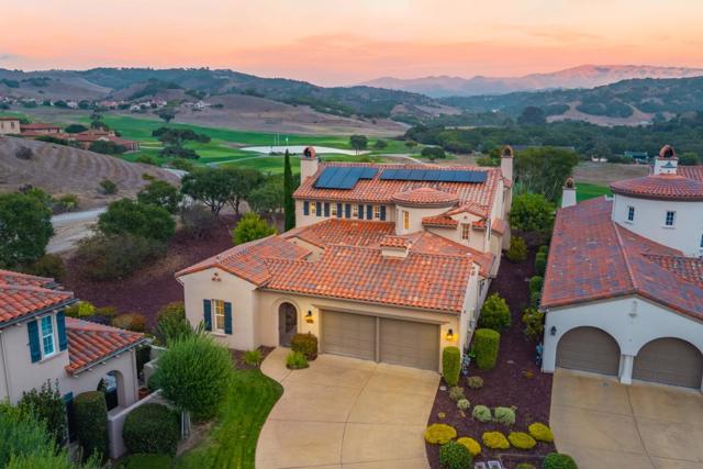 Perched above the 18th hole of TPC Monterey at Pasadera, this impressive property captures stunning views of the Jack Nicklaus signature golf course below and memorable sunrises over the nearby mountains. Sited at the end of a private cul-de-sac on an oversized lot, this home epitomizes a relaxed, resort-style feel. Featuring 3 spacious bedrooms each with an ensuite bathroom including a ground level casita, the versatile floor plan provides a wide range of options. Notable highlights of this golf villa include a gourmet kitchen complete with high-end appliances and quartzite countertops, primary suite with walk-in closet and bonus room plus balcony, owned solar panel system, epoxy floor 2 car garage with EV charging station, and a back patio pizza oven paired with custom serving counter. This is truly an entertainer's dream offering seamless indoor-outdoor living and an exciting opportunity to be part of a desirable gated community while also just minutes from the Monterey Peninsula.