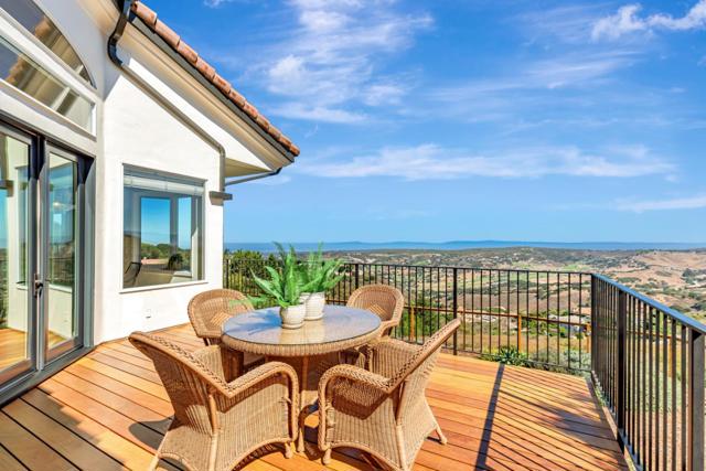 Freshly updated and ready to impress! Welcome to your own slice of California paradise in the exclusive, gated enclave of Halcyon Heights where sweeping views of Monterey Bay, Pasadera Golf Course, and the rolling Santa Lucia Mountains take center stage. This Mediterranean-inspired retreat has just been refreshed with new interior and exterior paint, brand-new balconies, new exterior doors, and new carpet in the primary suite making it feel like a breath of fresh coastal air. Spanning approx. 4,300 sq ft, the home features 4 spacious ensuite bedrooms, a chefs kitchen built for entertaining, and effortless flow between indoor and outdoor living. Gather around the living room fireplace, host unforgettable dinners in the formal dining area, or unwind by the lap pool while the sun sets over the hills. Need a spot for your EV? We've got you covered with a 3-car garage and a Tesla/EV charger and a newer water softener. All of this sits on ~6 acres of privacy and beauty, with stone floors underfoot and A/C to keep things cool when the sun decides to shine. Whether youre sipping wine on the patio, stargazing from the balcony, or exploring the nearby beaches and trails, this is where luxury meets lifestyle and your Monterey dream begins. Come see it for yourself.