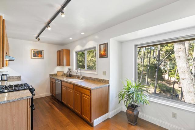 Welcome to 7 Wyndemere Vale, nestled at the end of a serene cul-de-sac in the tranquil Skyline Forest. This 4-bed, 3-bath home offers the perfect balance of elegance and comfort. Spread across approximately 1,940 square feet on a generous almost half acre lot, this residence welcomes you with vaulted open-beam ceilings, Saltillo tile, and a stately Carmel-stone fireplace in the living room. The updated kitchen, with granite countertops and oversized windows, frames stunning greenbelt views with a glimpse of Monterey Bay. The mostly single level home, includes a main level boasting three bedrooms, including a primary ensuite, while downstairs you'll find a private guest suite with its own entry and full bath ideal for visitors, a private office or multigenerational living. Thoughtful updates to flooring, lighting, cabinetry, windows, and more make this home move-in ready. Outside, three decks invite al fresco dining or quiet relaxation amid forested views, and a fenced garden area adds charm and privacy. Complete with an oversized two-car garage, it's the perfect home for commuting and exploring. Conveniently located just minutes from Pebble Beach, Carmel, Pacific Grove, golf, and coastal trails, this peaceful retreat is Peninsula living at its finest.