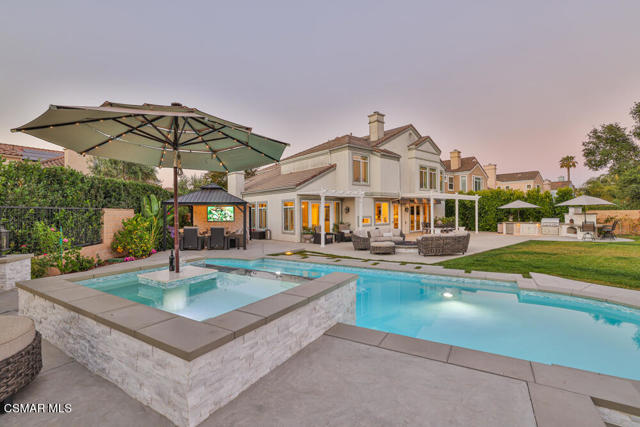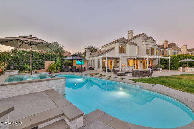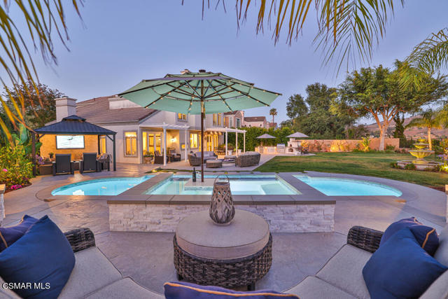 Join us for a twilight Open House! Savor sunset views, wood-fired pizza and drinks at our exclusive open house! Sat. 10/4 5:30-7:30pm...Welcome to this beautiful, truly unique 5 bedroom, 4.5 bathrooms (1 master suite downstairs with separate entry) executive home with almost 4000 sq. ft. of living space - situated on one of the largest VIEW lots in the Deauville Estates neighborhood! The kitchen opens to the family room and features granite and quartz countertops, gas range, center Island, walk-in pantry and abundant natural light. The formal dining room is located directly off the kitchen and French doors open to the backyard patio. The master bedroom suite is huge with a sitting area, fireplace, his and hers walk-in closets, oversized bathroom with soaking tub and a separate glass shower. Privacy and valley views surround your master bedroom. The huge, resort-like backyard with professionally designed landscaping has everything you could want! Fire up your favorite foods in your built in BBQ center with refrigerator, sink and even a custom wood burning pizza oven! You can relax around the fountain or massive gas fire pit with at least 10 of your favorite friends, or watch your favorite show or game in the covered outside gazebo. The beautiful backyard, pool and spa are less than 4 years old and the spa features a table and lighted umbrella, perfect for a relaxing outdoor meal or drinks. Enjoy the magnificent view from anywhere in the yard. Very private lot, 2-zone A/C, whole-house fan, 3 car garage, 3 fireplaces, community pool, high ceilings, too much to mention! You don't want to miss this opportunity!
