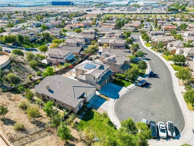 Looking for extra space or a potential 4th bedroom? This home features a versatile first-floor FLEX ROOM that can easily be converted into a guest room, office, or 4th bedroom offering flexibility for your lifestyle or future needs. You’ll also benefit from 16 fully PAID-OFF solar panels, helping you save on energy costs from day one. Tucked away on a quiet cul-de-sac, this well-maintained property offers breathtaking city views from multiple angles and a spacious, open floor plan. Inside, you’ll find three full bathrooms and walk-in closets in every bedroom, with the primary suite offering dual sinks for added convenience. Other recent upgrades include a newer water heater, dual-pane windows, rain gutters, and a freshly painted exterior. Step outside to enjoy a 9-foot vinyl patio cover with two ceiling fans, perfect for relaxing or entertaining year-round. The tandem garage offers additional space for a third vehicle, a home gym, or extra storage. Conveniently located near top-rated elementary, middle, and high schools, Moreno Valley College, scenic hiking trails, and popular shopping centers. This move-in-ready home offers both comfort and functionality in one of Moreno Valley’s most desirable neighborhoods. Schedule your private tour today!