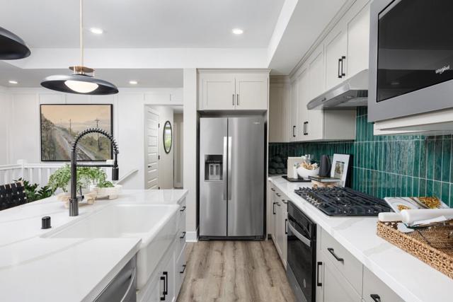 Experience elevated living in this 3-bedroom, 2-bath model home with 1,493 sq. ft. of beautifully upgraded space at The Lumberyard. Featuring Shaker panel doors in Dove Grey with a Winter White kitchen island, this home offers a farmhouse sink with quartz countertops, custom tile backsplash, and Whirlpool stainless steel appliances. Matte black fixtures and upgraded lighting bring a modern edge, while custom flooring completes the designer feel. Enjoy downtown views and a prime location - furnishings available at an additional price.